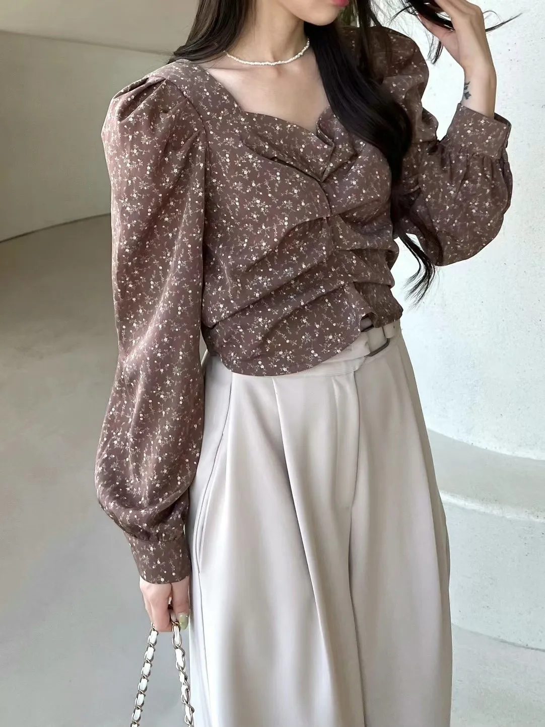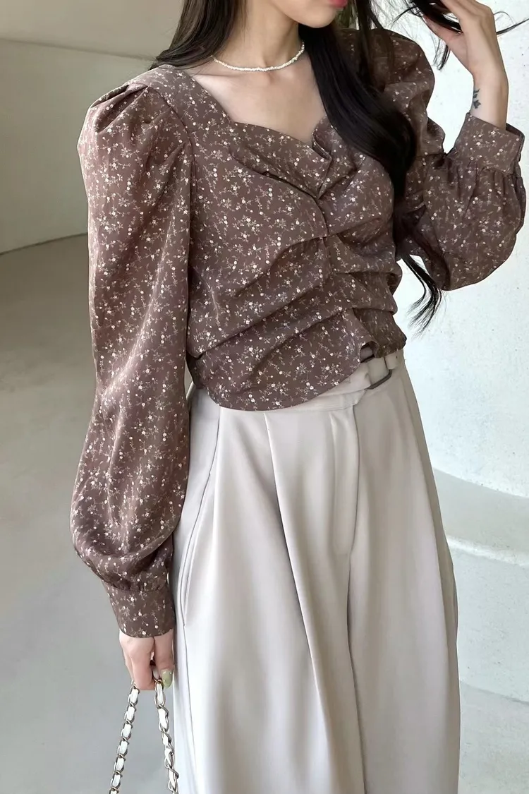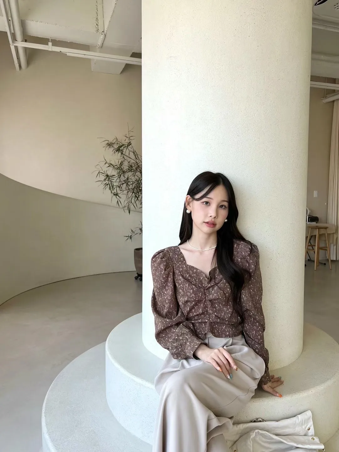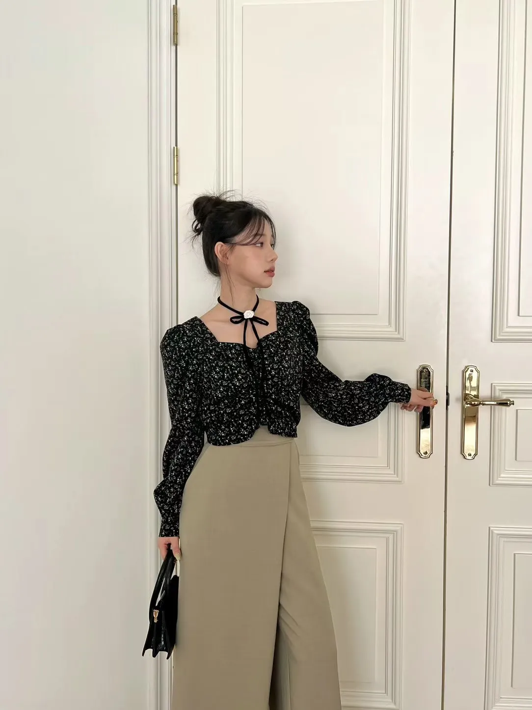 雪紡 側拉鍊 空間感公主澎袖 後腰鬆緊 穿到M號