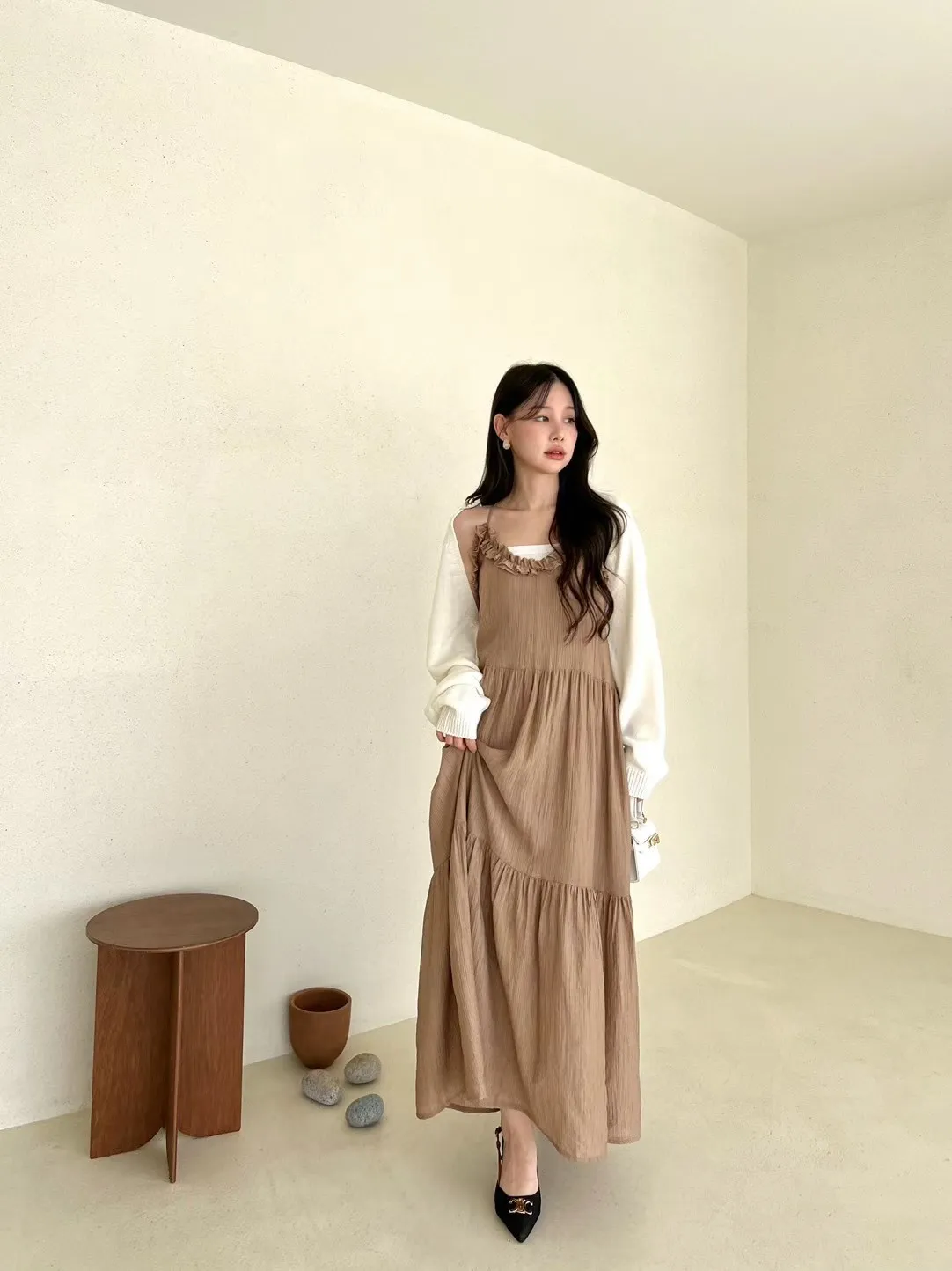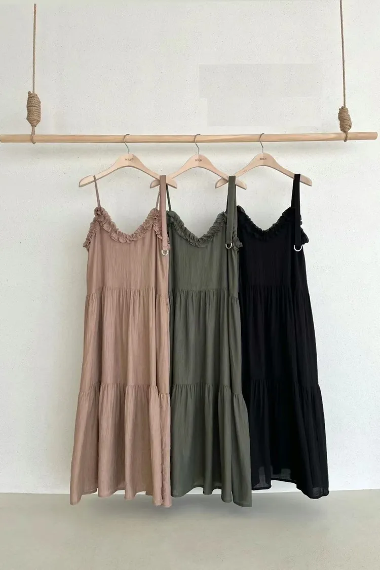 棉+人造絲+聚酯 肩帶不可調 小個妹妹可搭跟鞋 不易皺面料 自然亮絲感