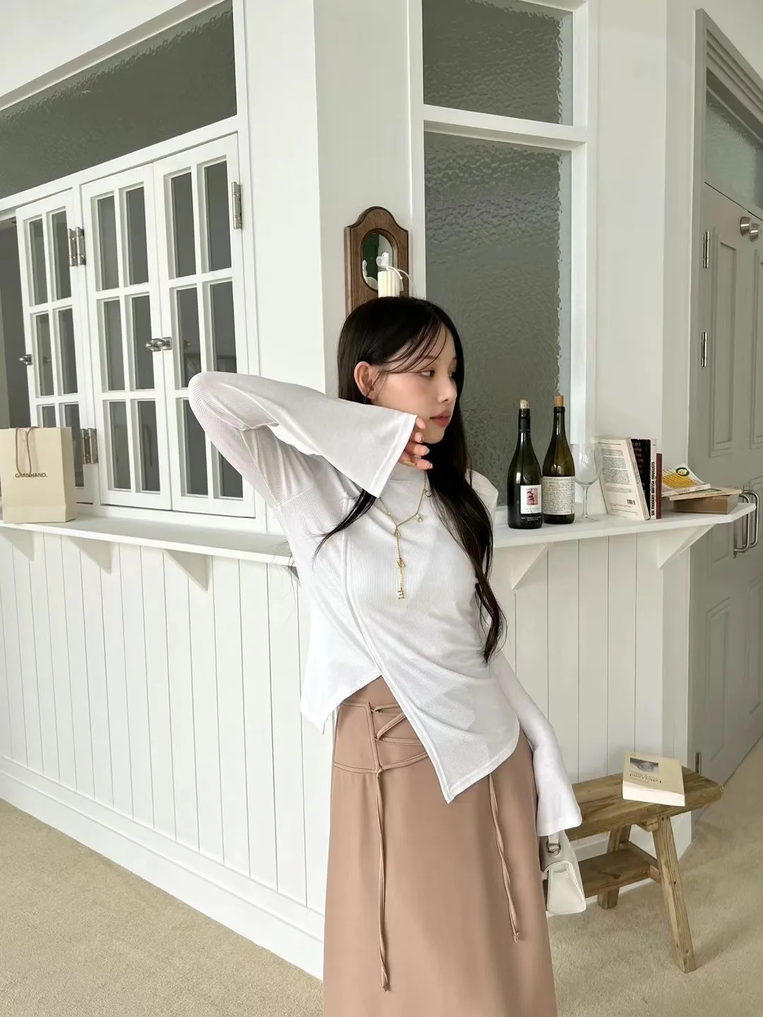 人造絲+彈力纖維 超舒服熊寶貝觸感 微微喇叭袖 彈性極佳 合身不貼身