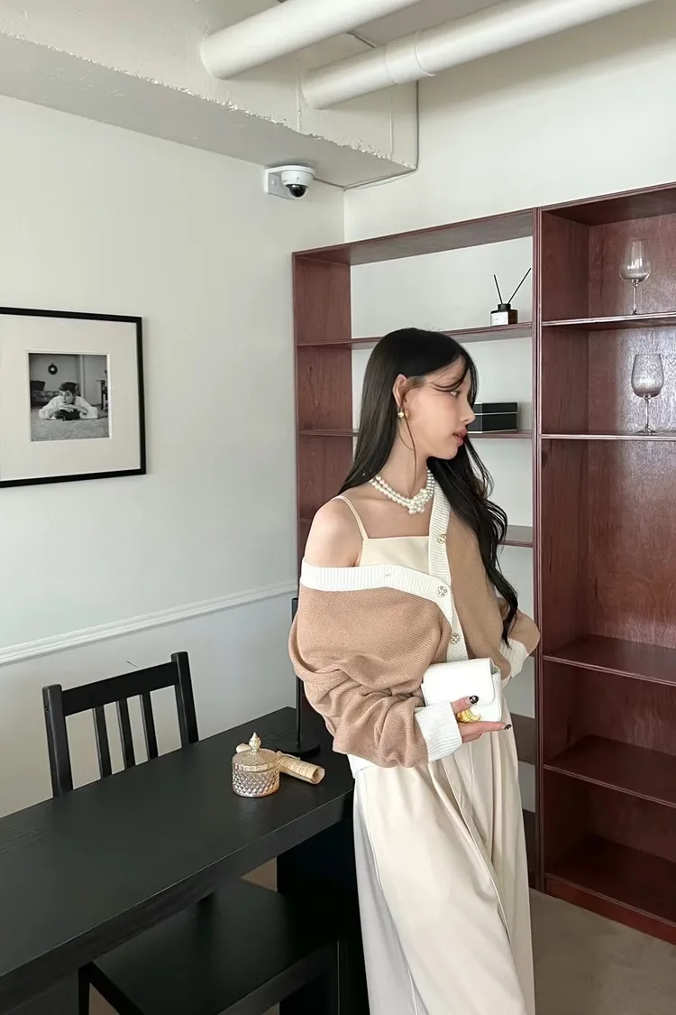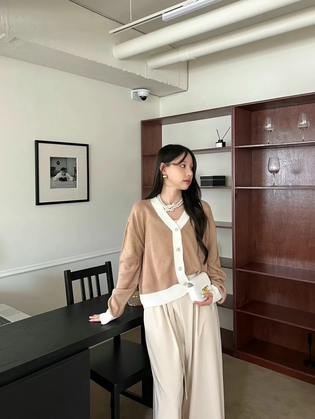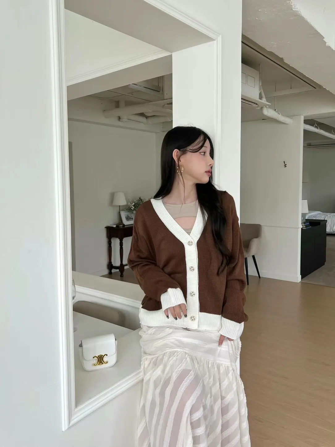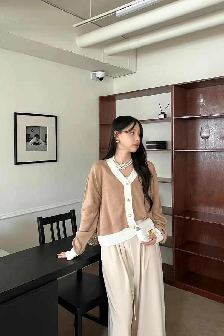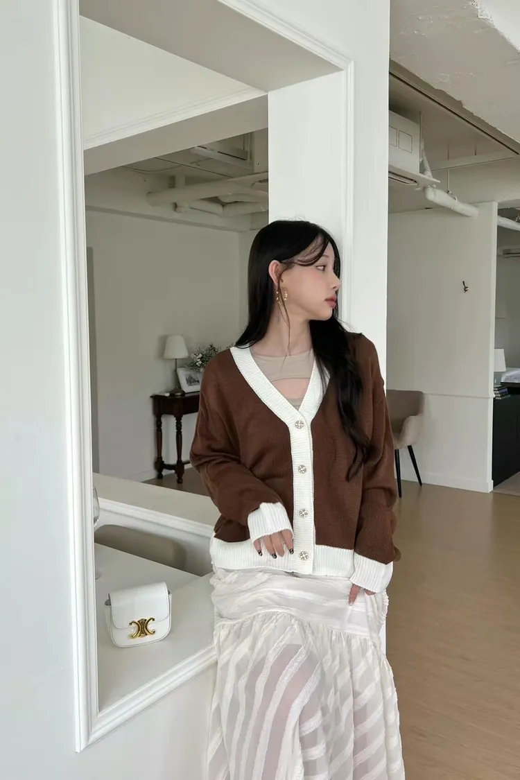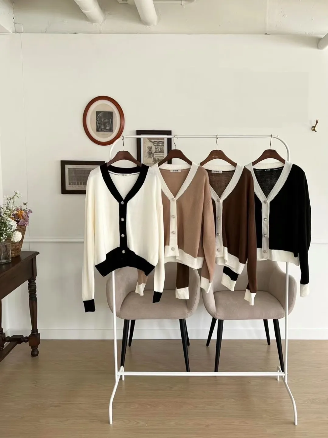 CS166金釦跳色學院風針織外套 白 奶茶 咖 黑 線上價$960 官網價$990