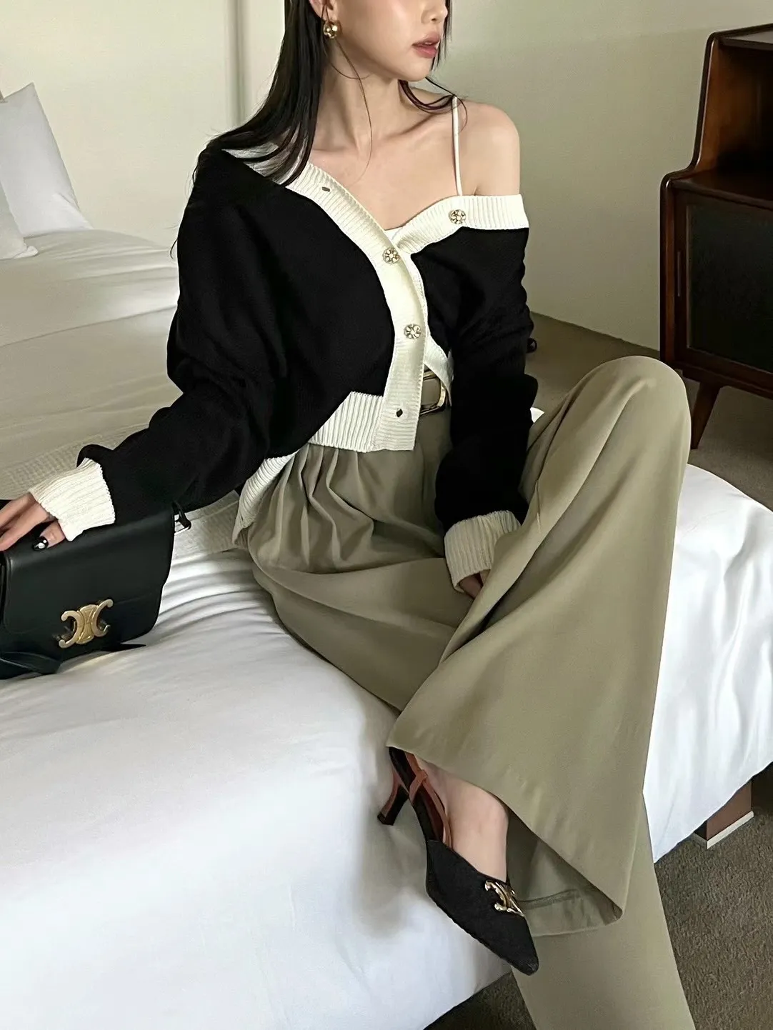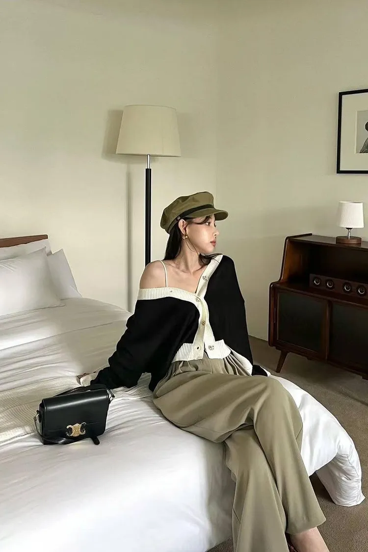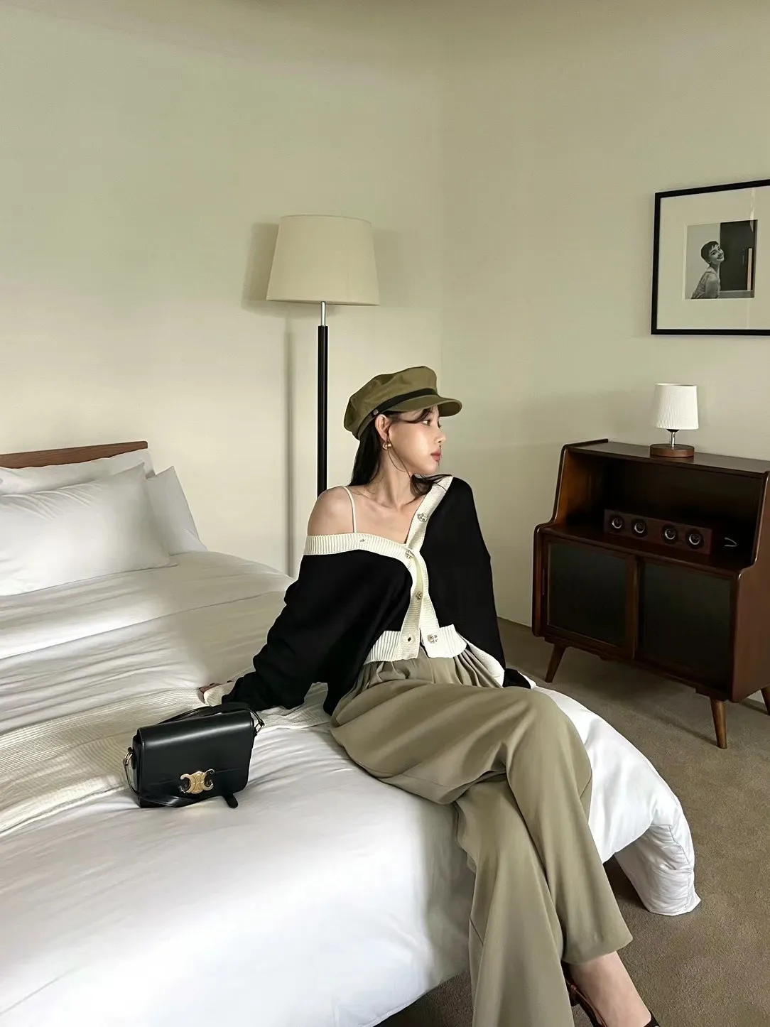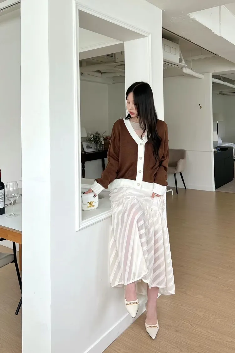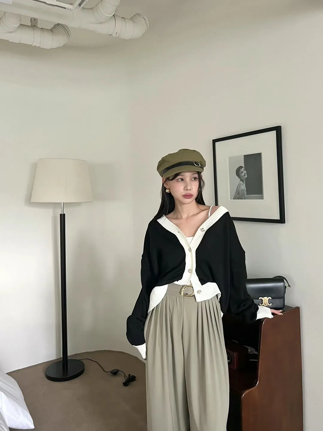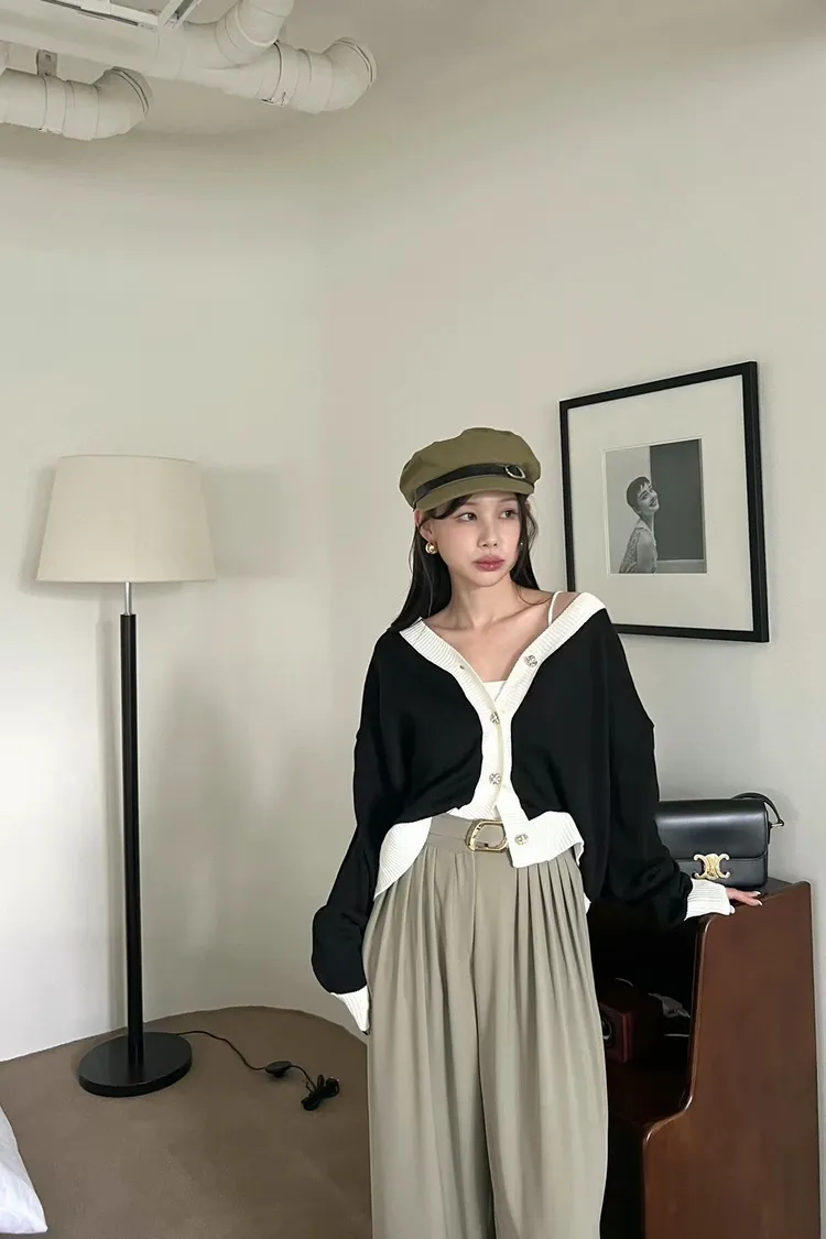 CS166金釦跳色學院風針織外套 白 奶茶 咖 黑 線上價$960 官網價$990