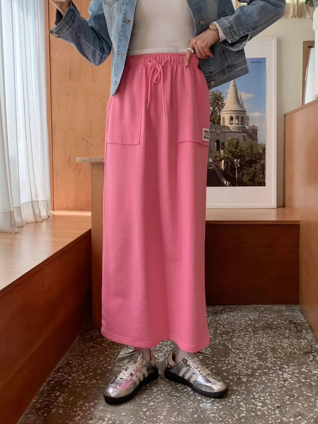 棉 薄款 內裡舒適親膚毛巾棉 全腰鬆緊抽繩 有口袋 現在天氣可穿