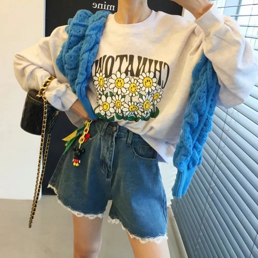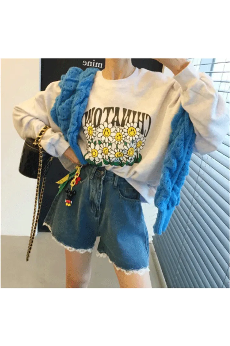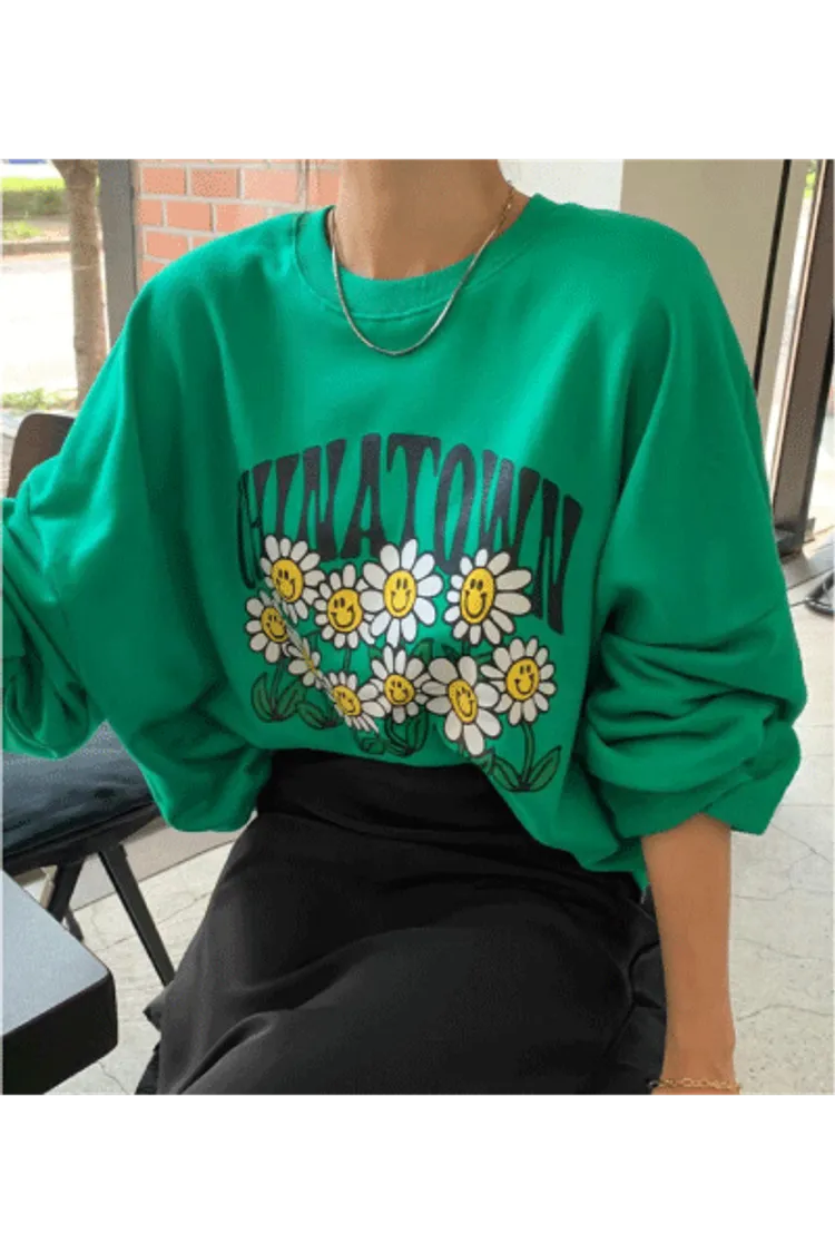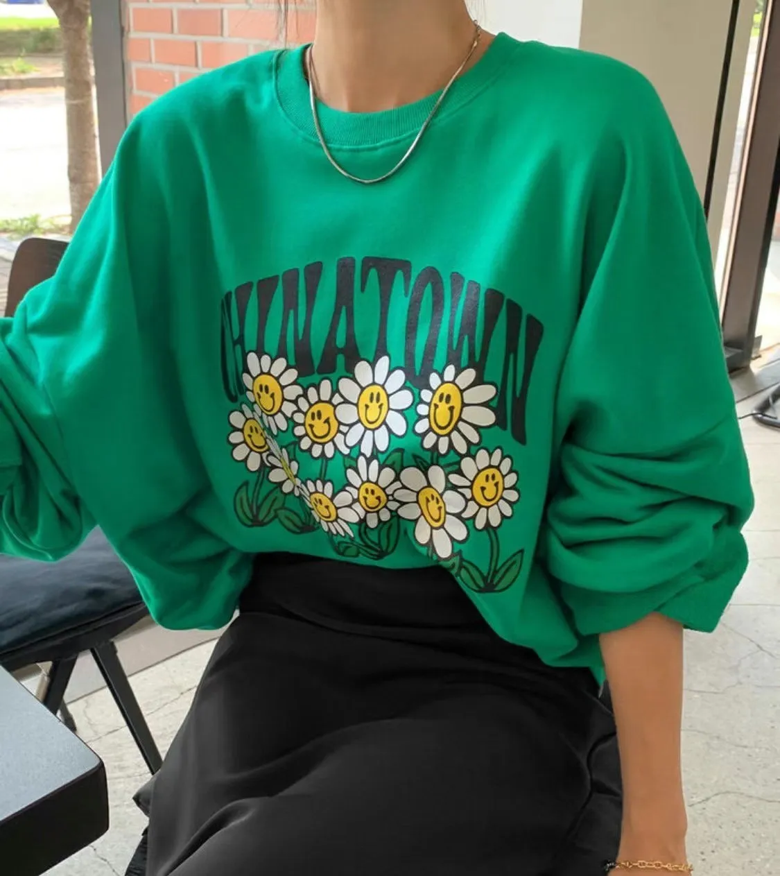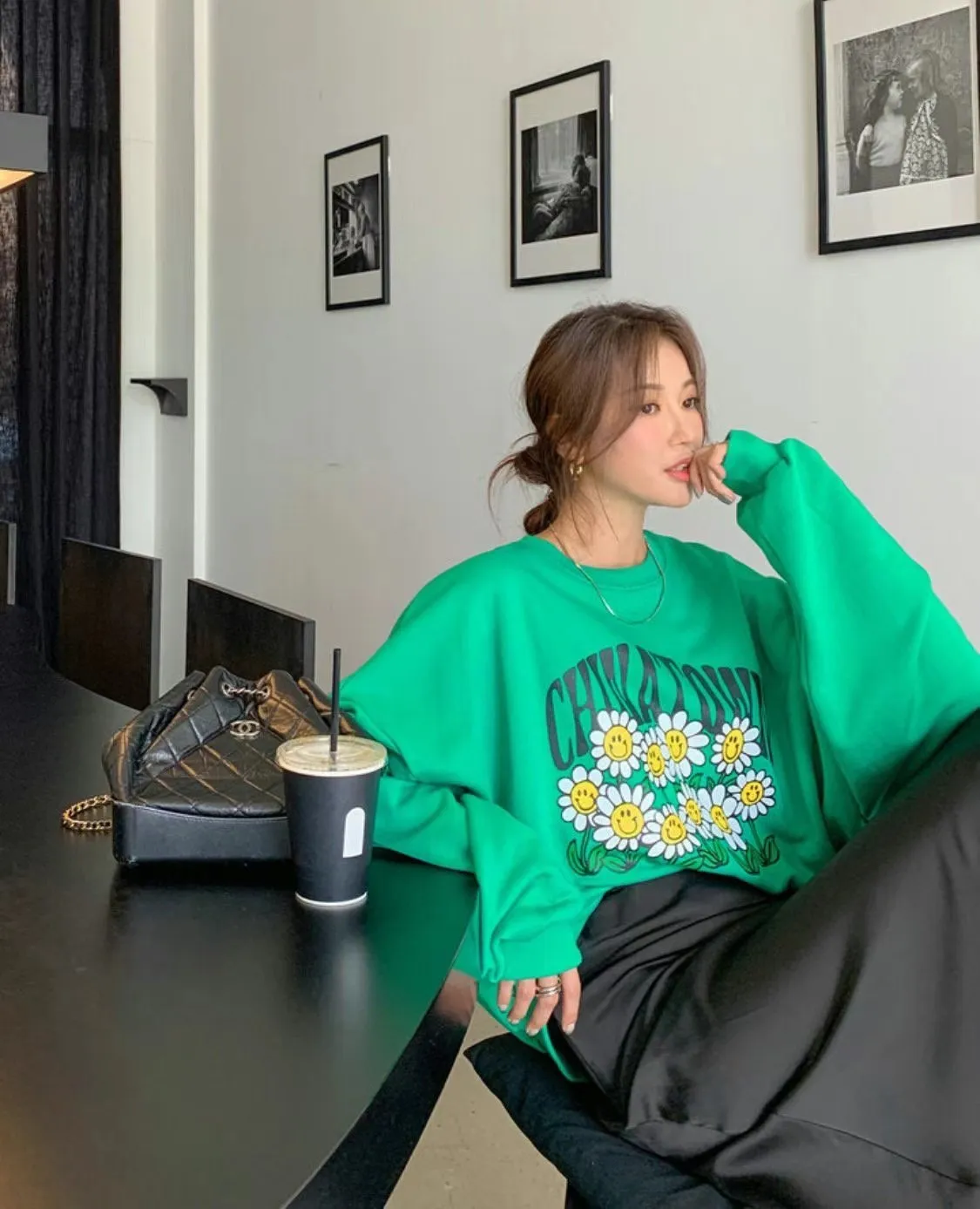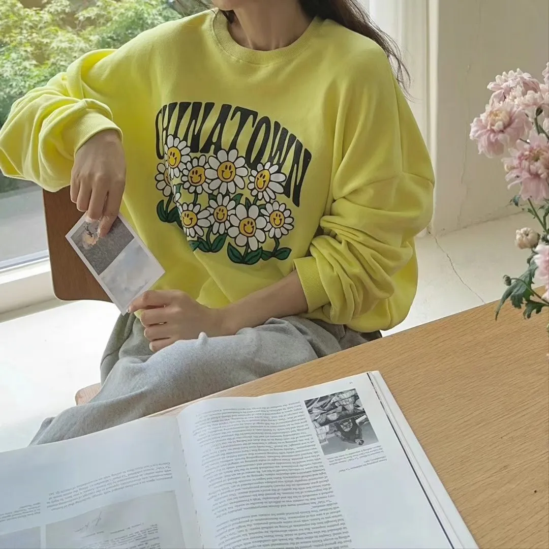 CS179薄款小雛菊大學T 灰 黃 粉 綠 線上價$390 官網價$420