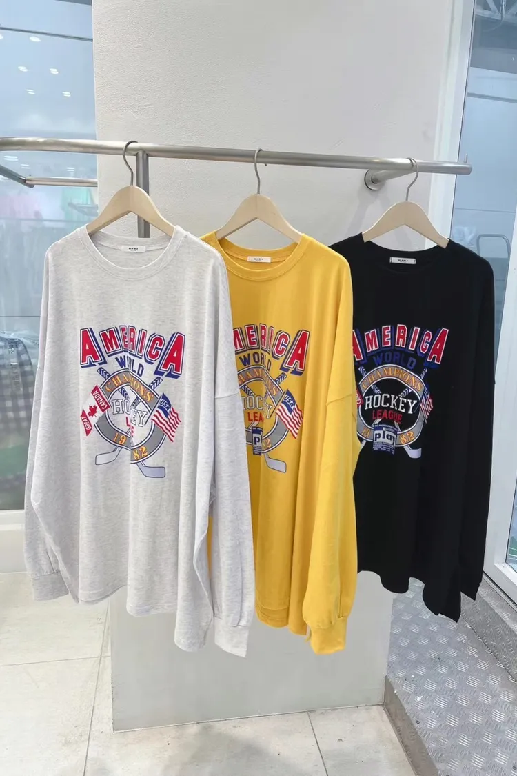 CS180薄款America曲棍球大學T 灰 黃 黑 線上價$380 官網價$410