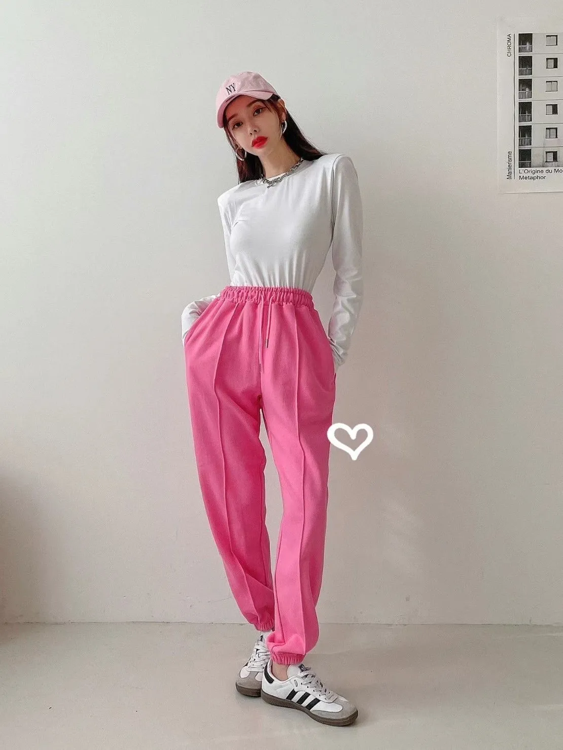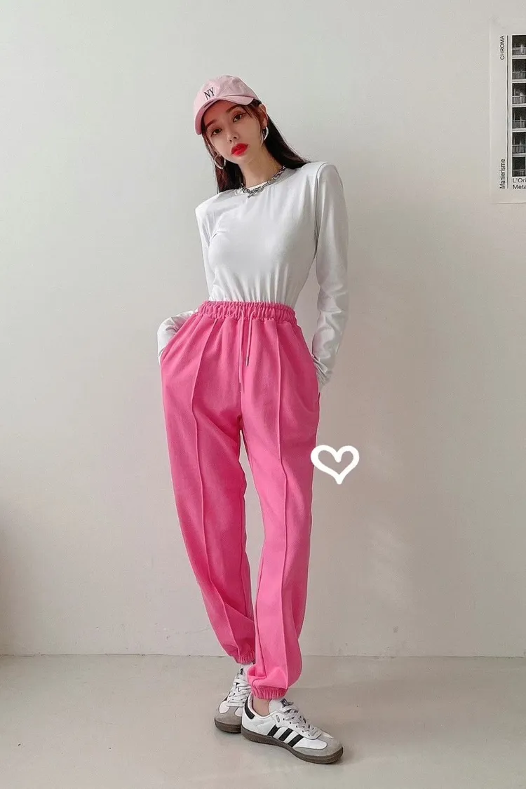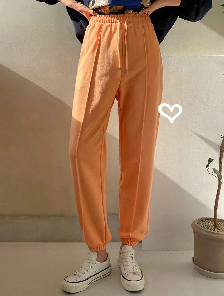 CS193繽紛純色腰抽繩棉長褲 灰 橘 粉 綠 黑 線上價$420 官網價$450