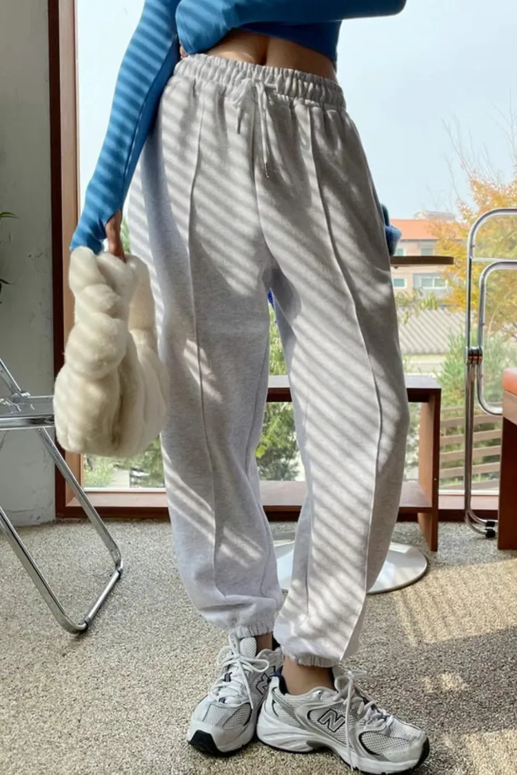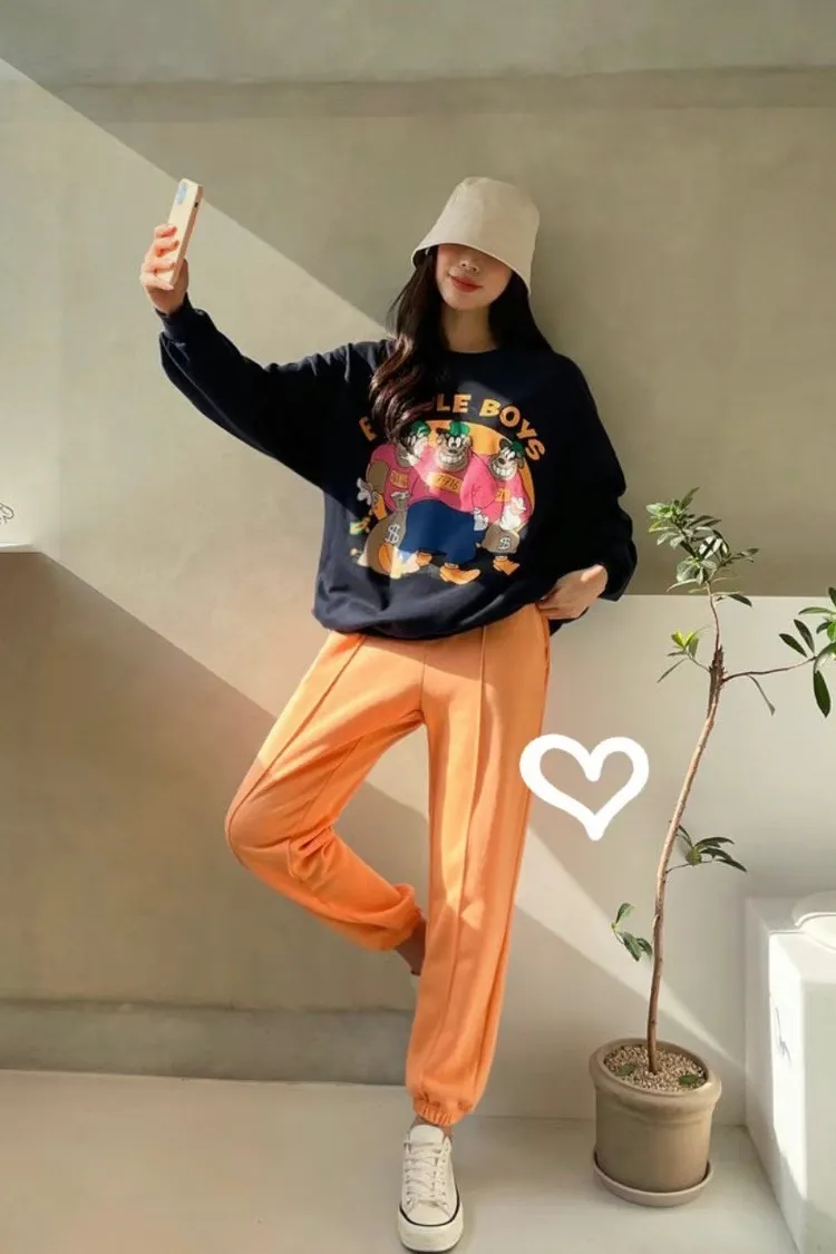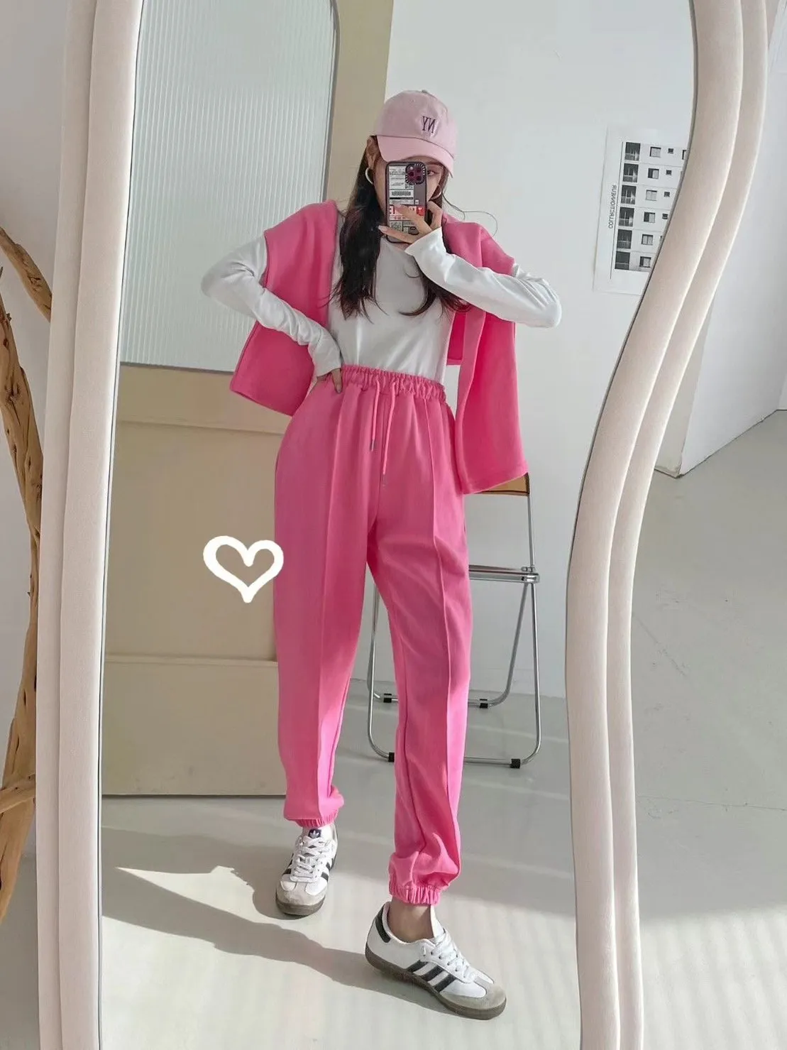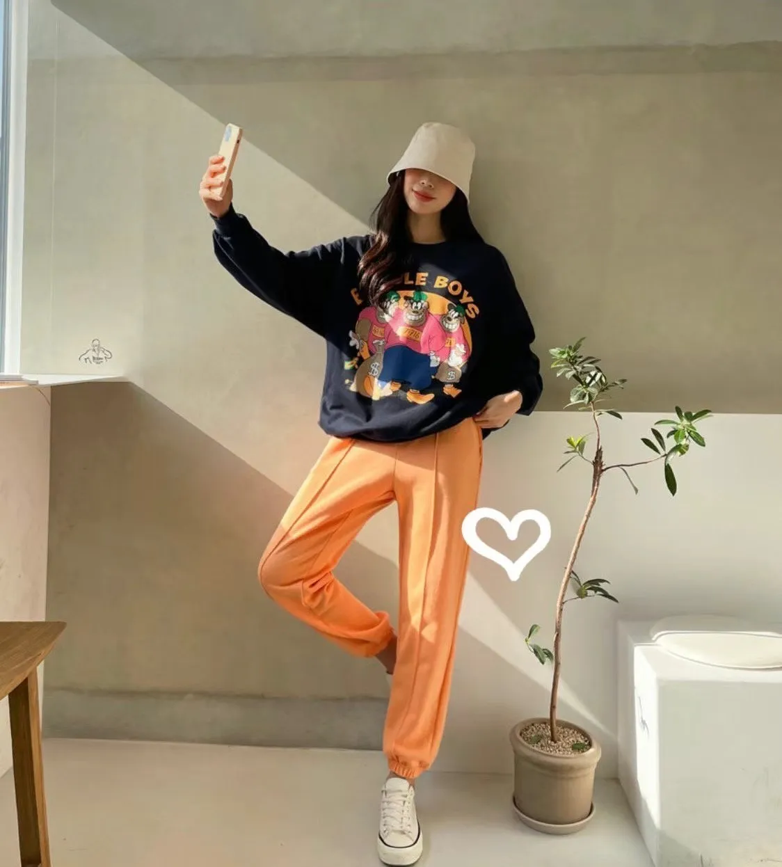 CS193繽紛純色腰抽繩棉長褲 灰 橘 粉 綠 黑 線上價$420 官網價$450