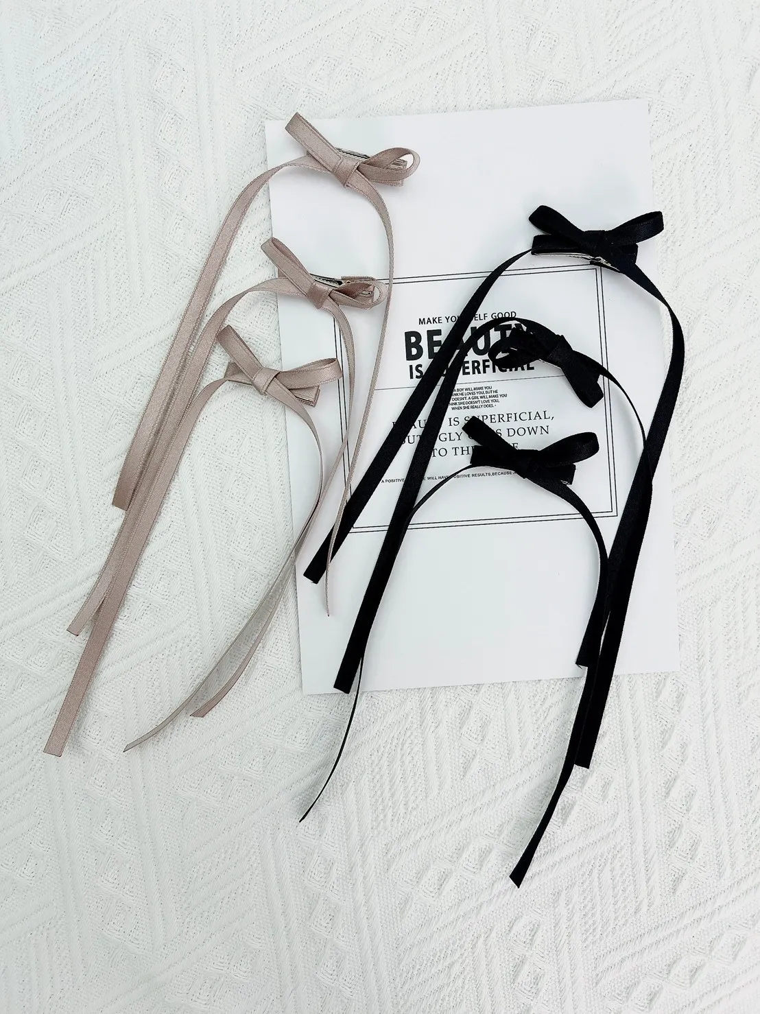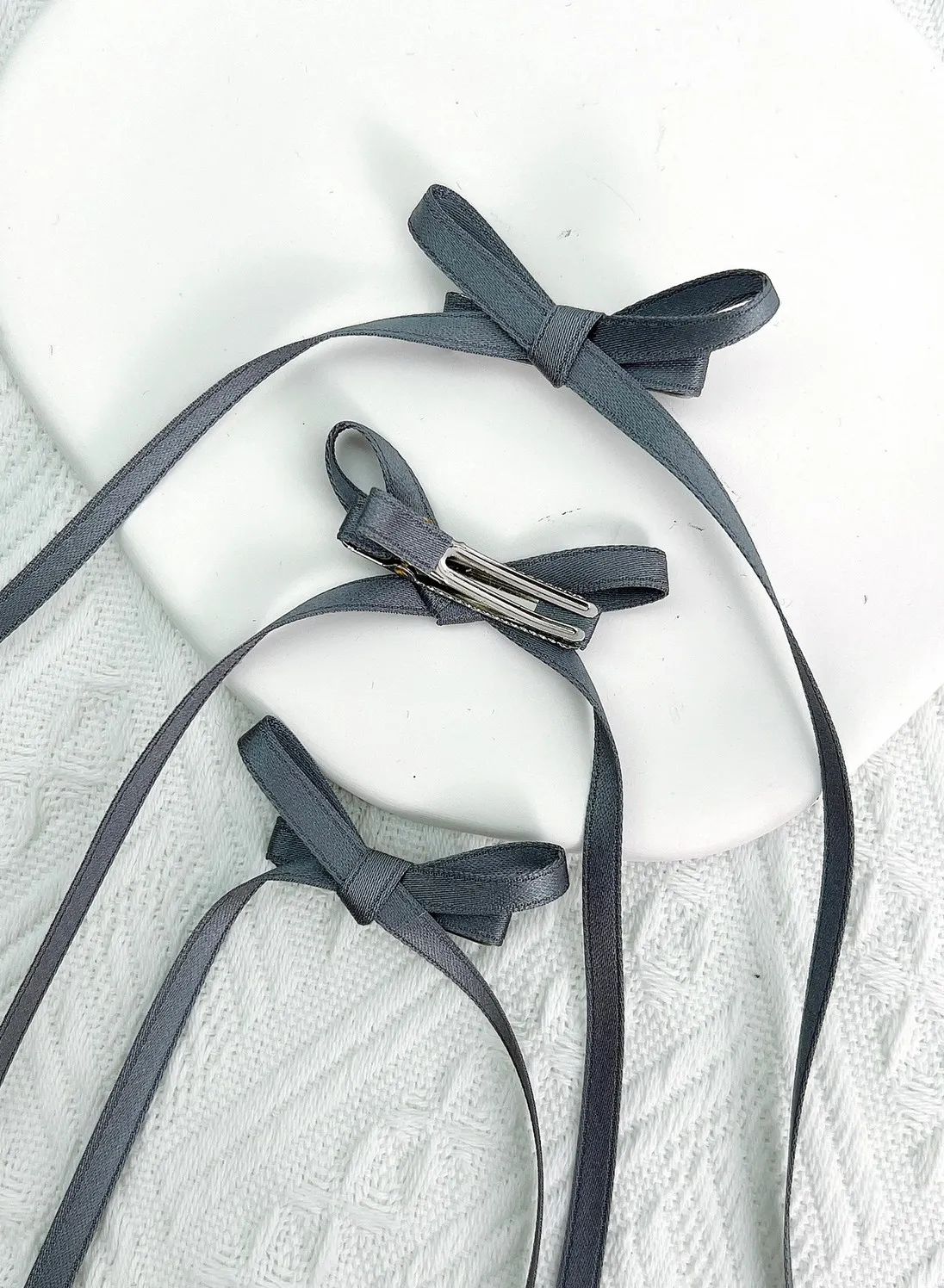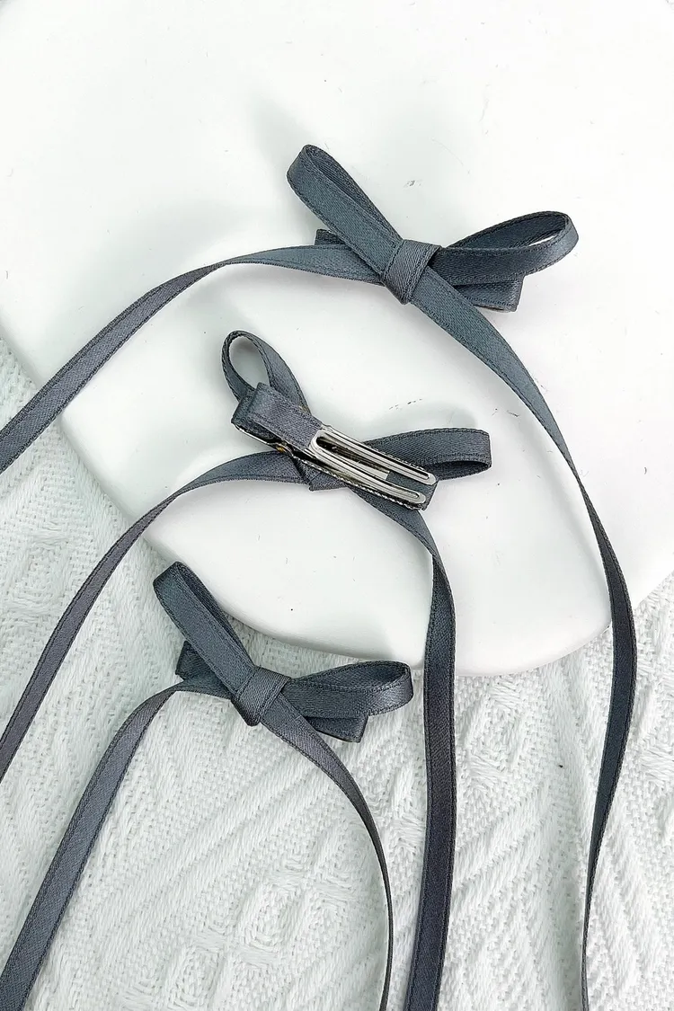 CS206細緞帶蝴蝶結髮夾組(三個一組) 白 粉 藍 黑 灰 $140