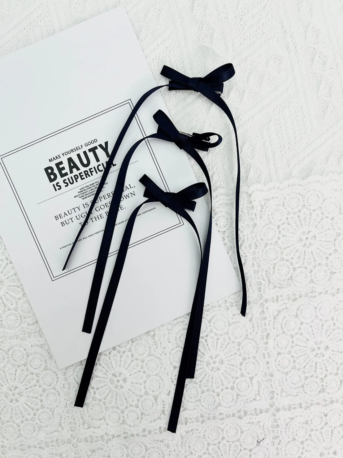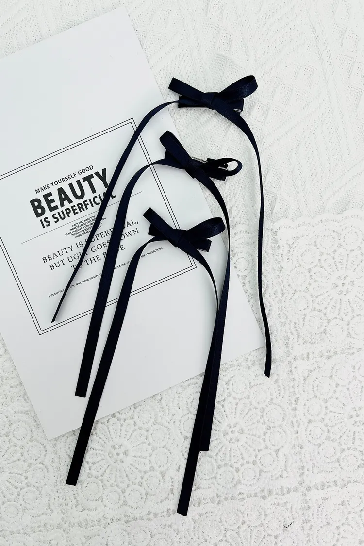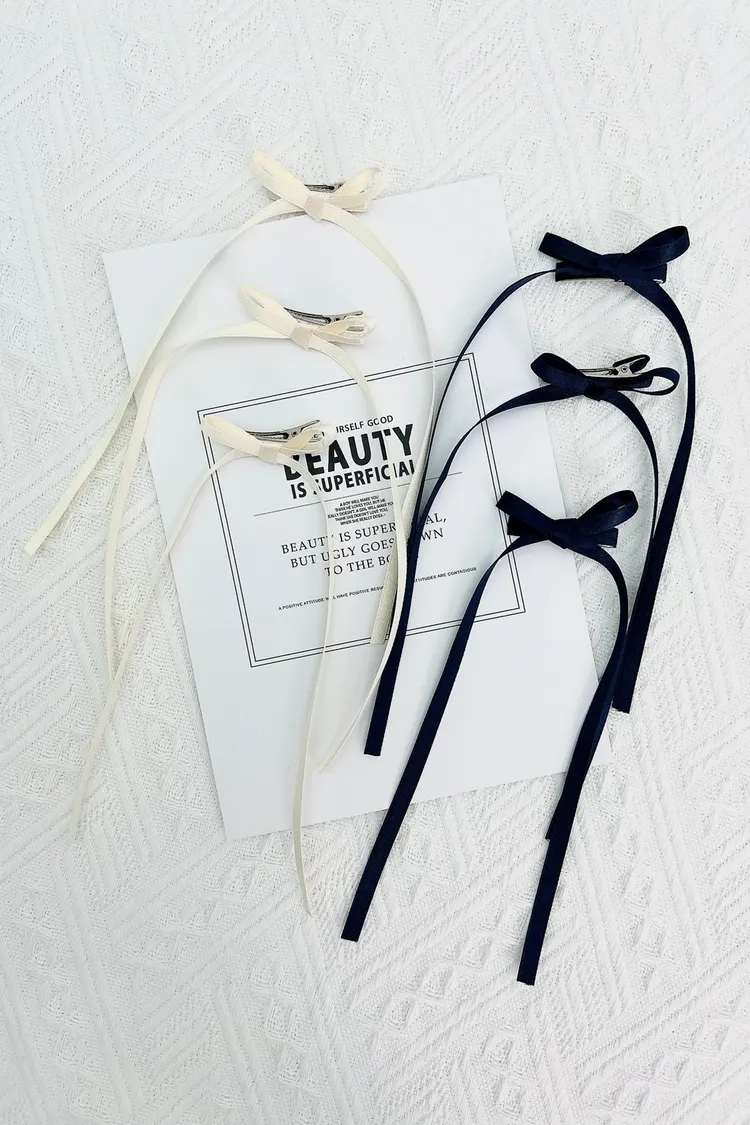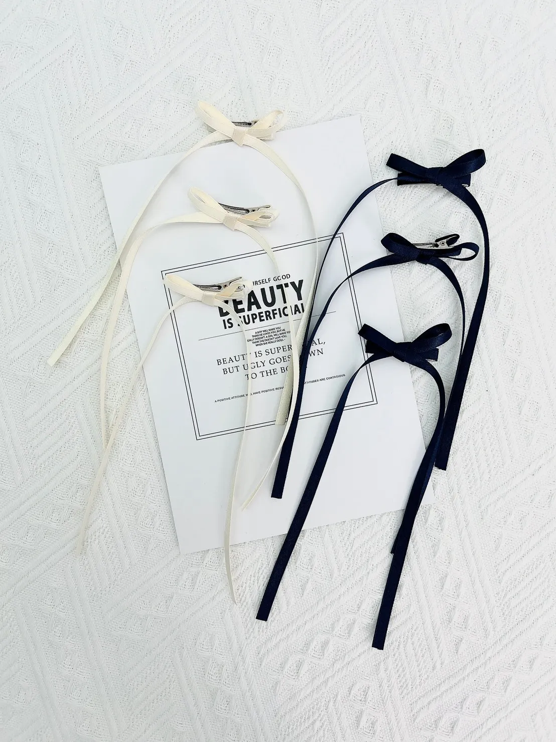CS206細緞帶蝴蝶結髮夾組(三個一組) 白 粉 藍 黑 灰 $140