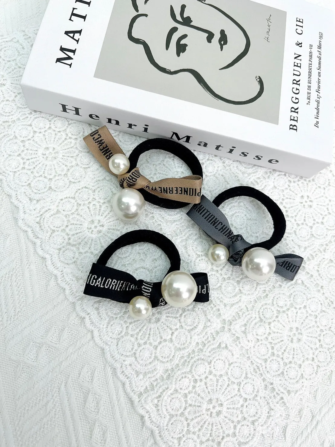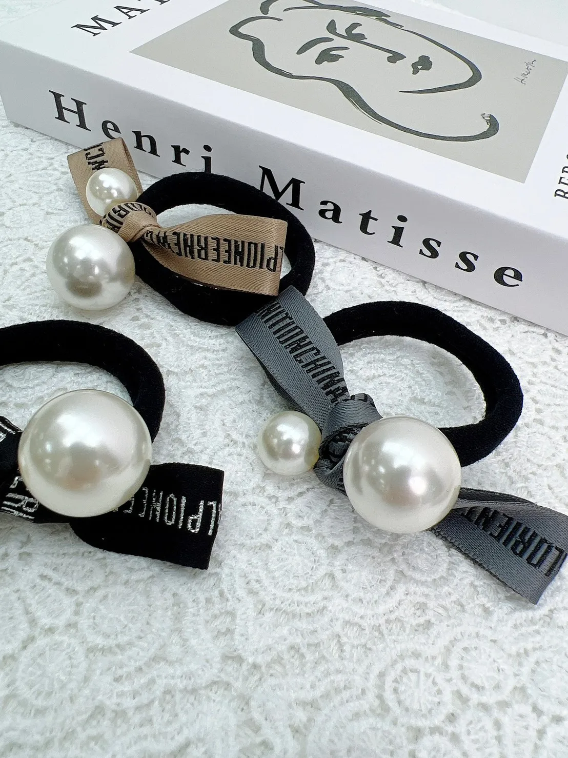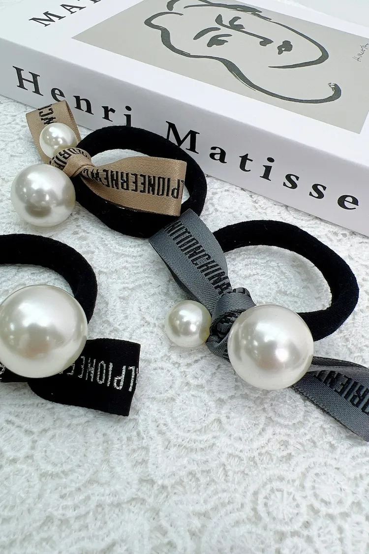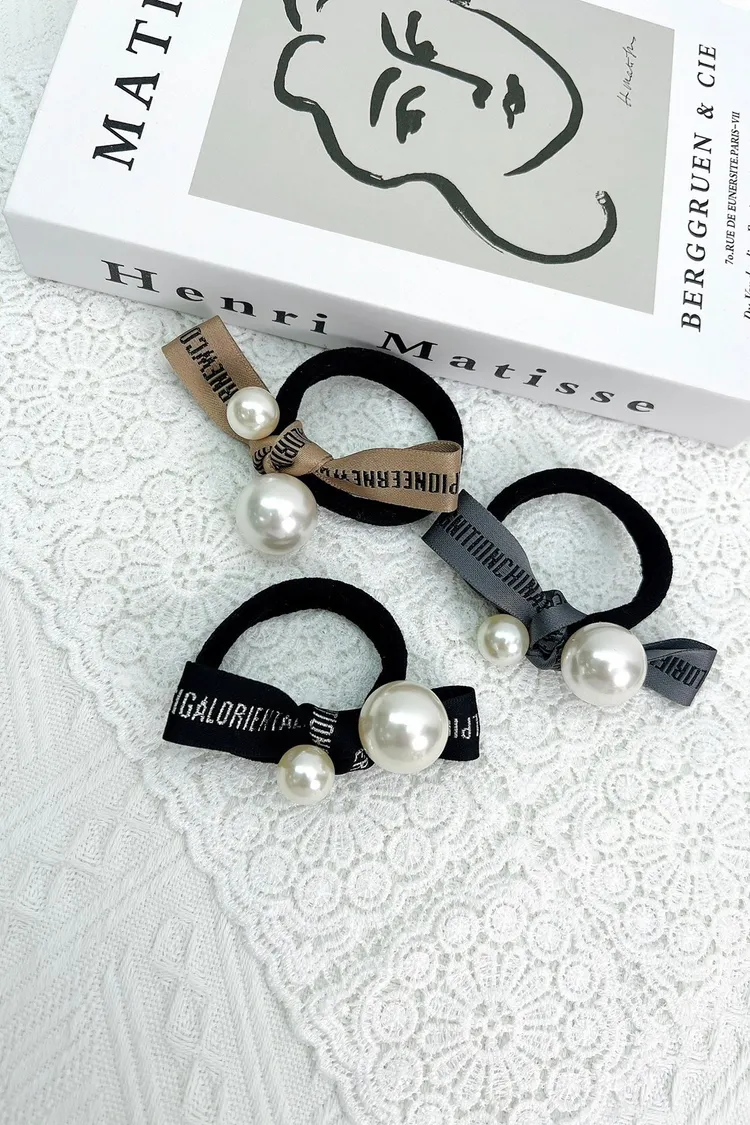 CS211英文雙珍珠寬繩髮圈 灰 咖 黑 $99