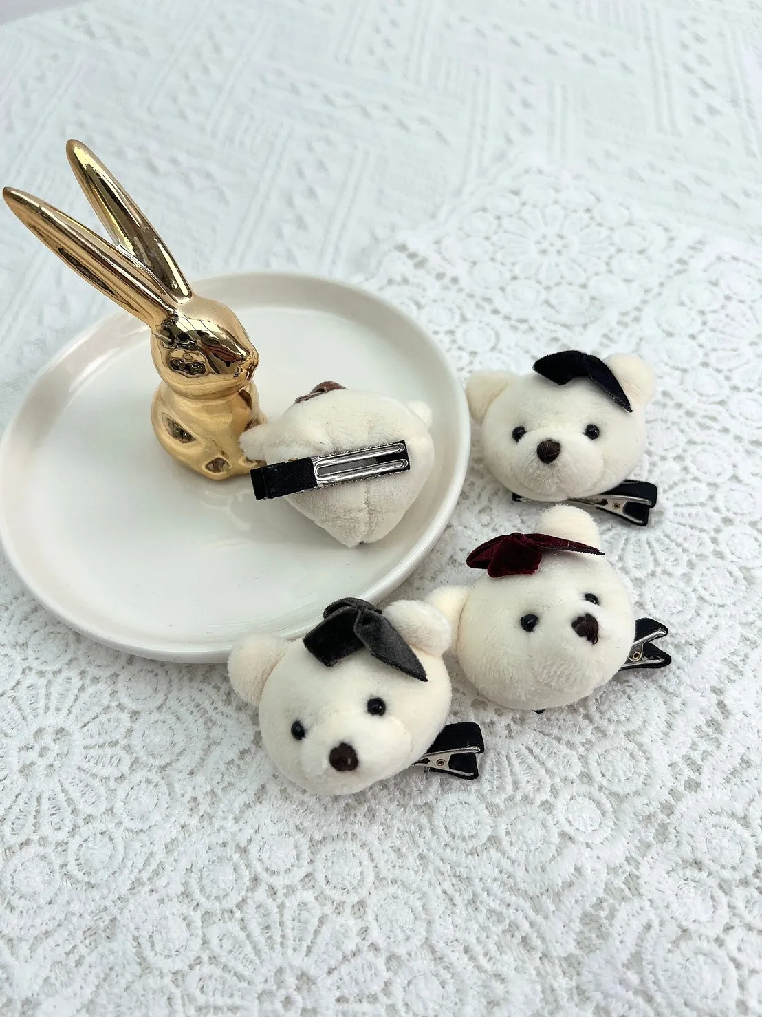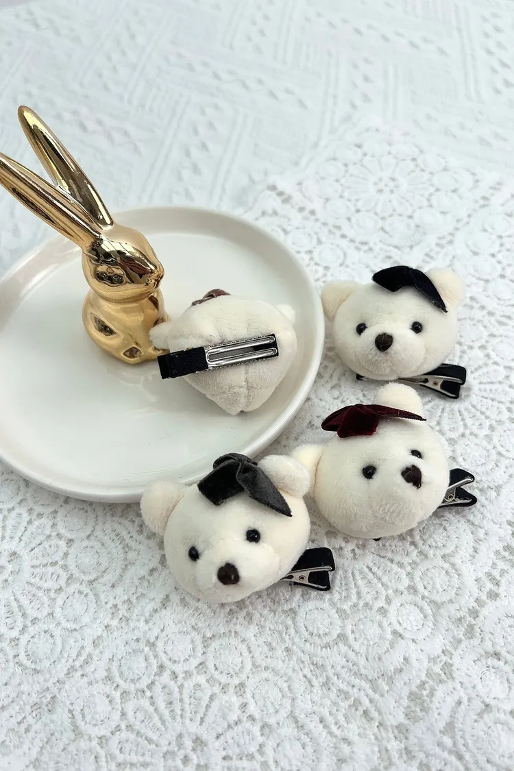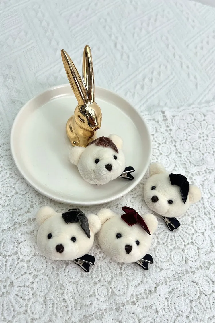 CS216韓製手工可愛熊熊頭小髮夾 咖 紅 黑 灰 $120
