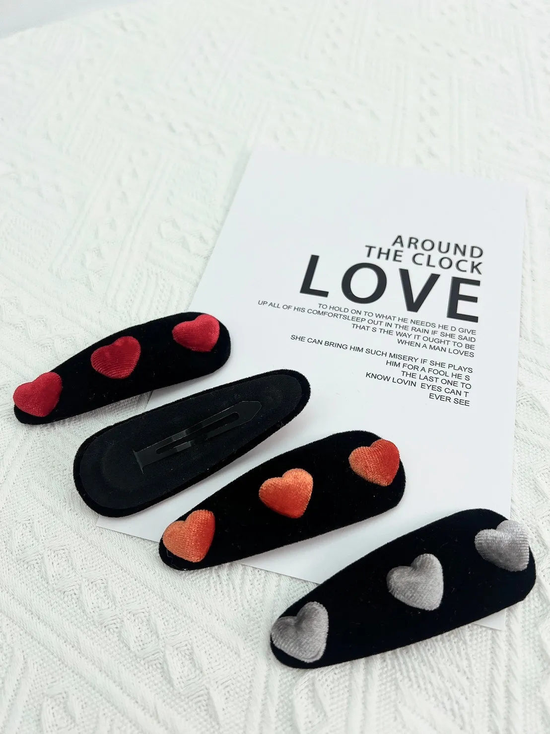 CS217立體愛心絨面髮夾 咖 灰 橘 紅 $110