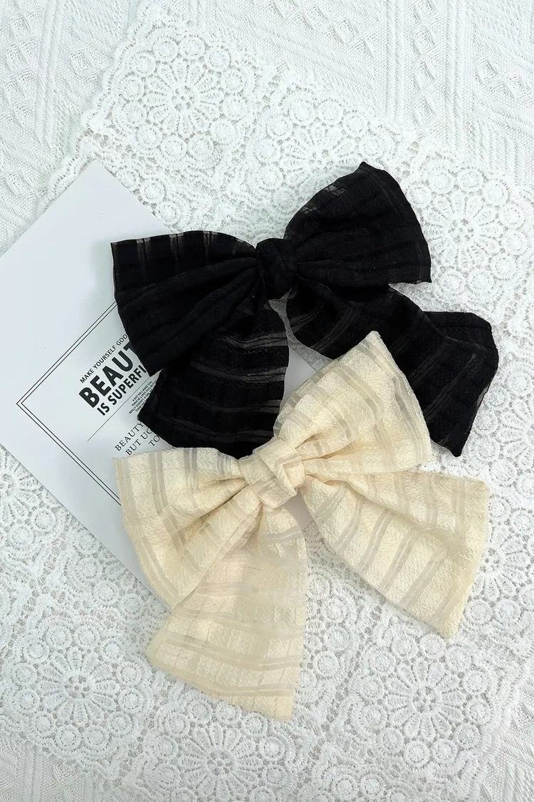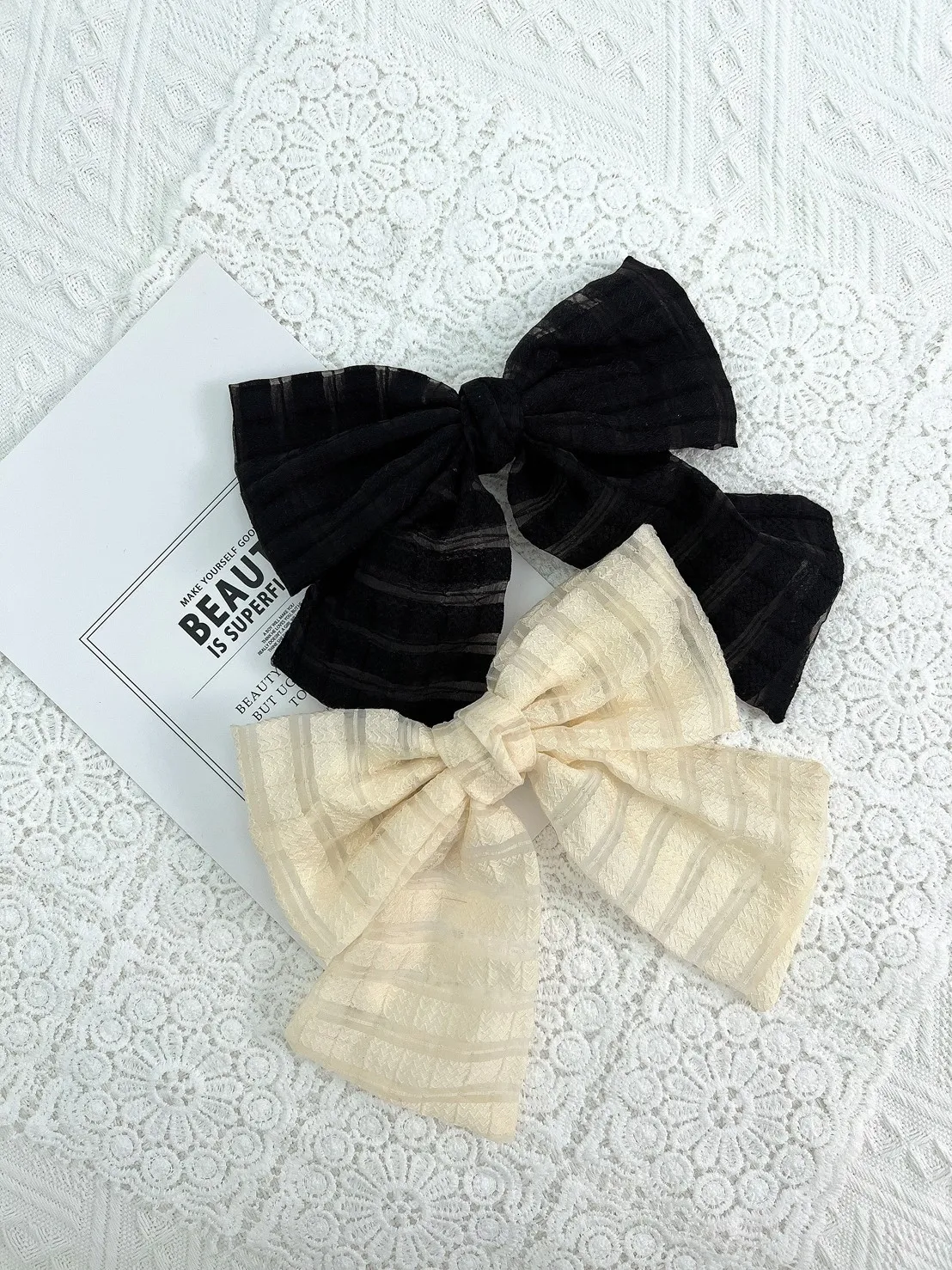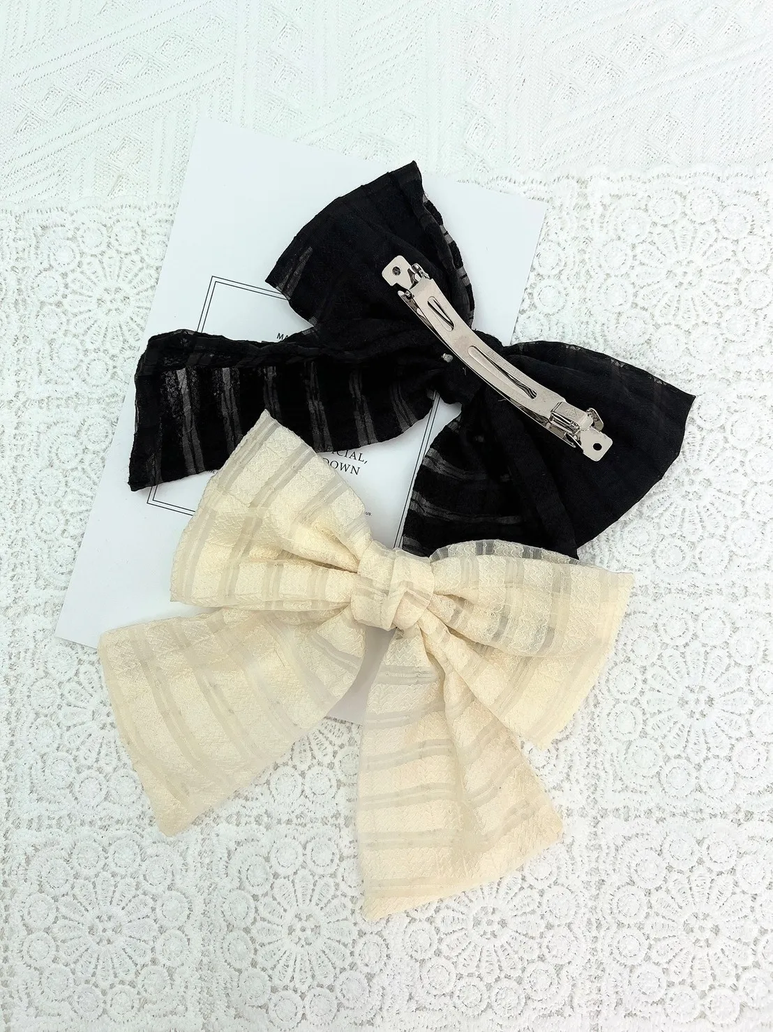 CS220溫柔透光紗蝴蝶結髮夾 米 黑 $140