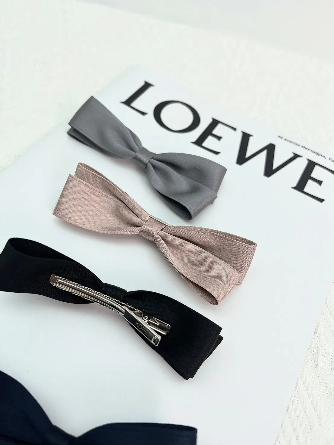 CS230經典氣質緞帶蝴蝶結髮夾 粉 灰 藍 黑 $110