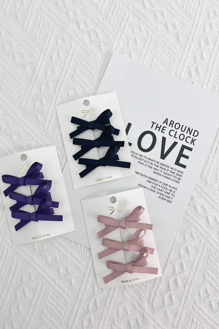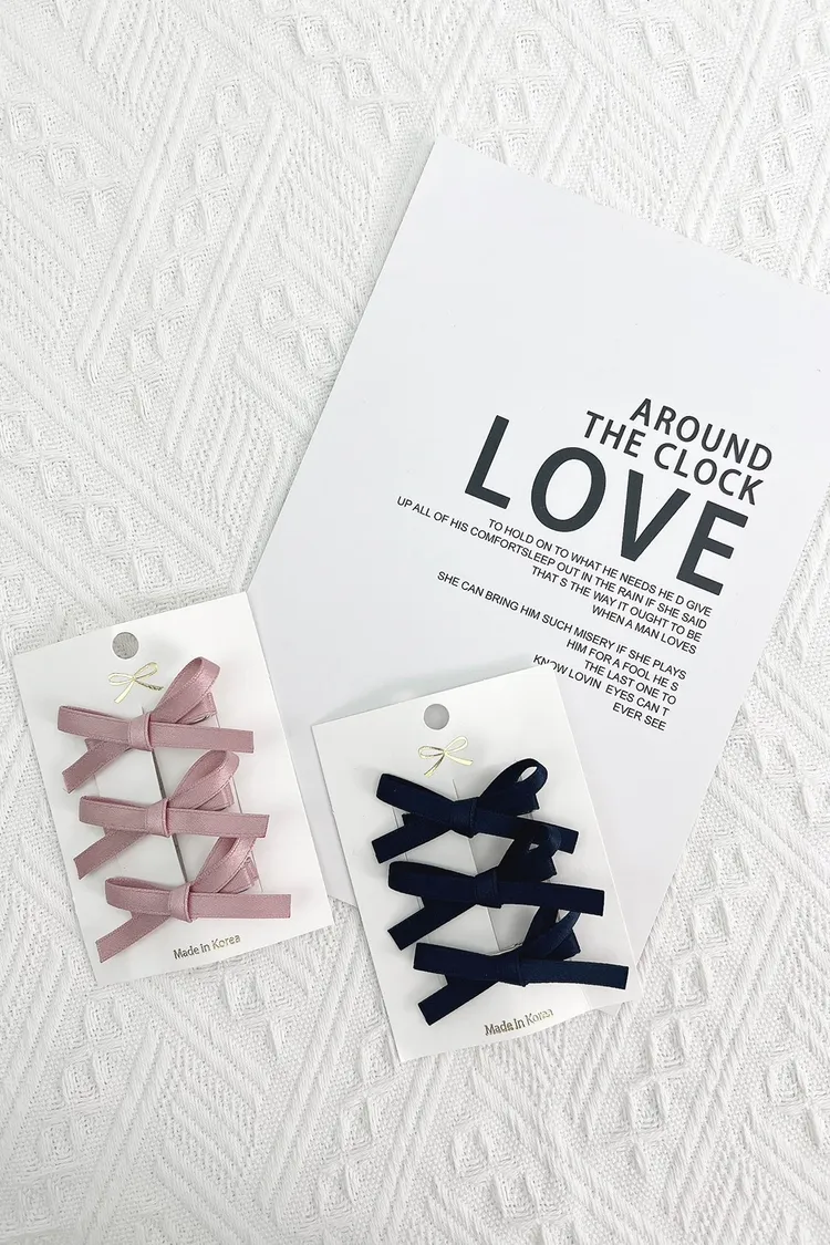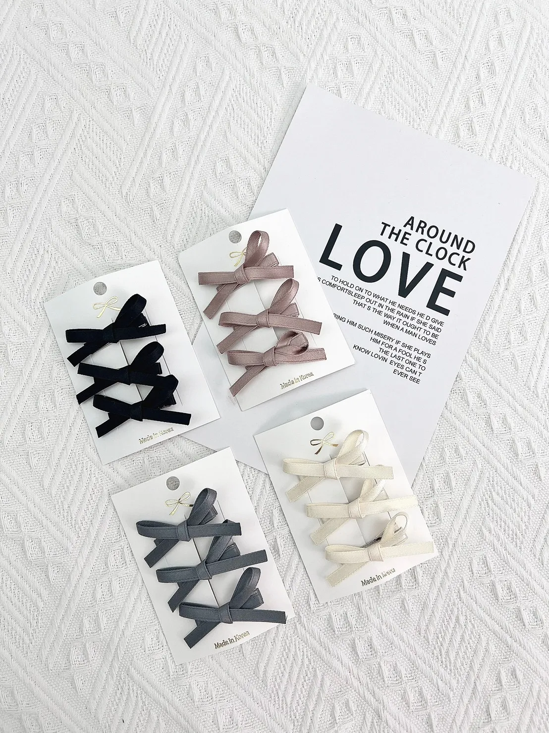 CS234許願款小蝴蝶結緞帶髮夾組(三個一組) 粉 米 黑 藍 紫 灰 奶茶 $99