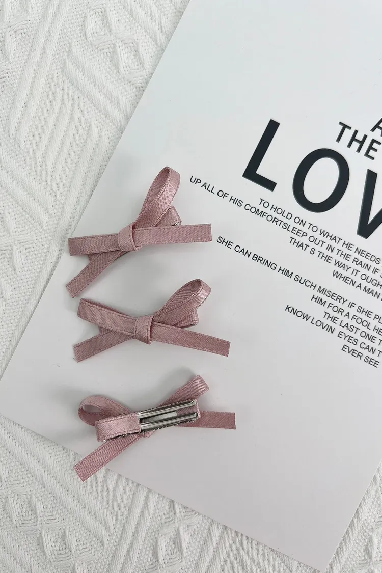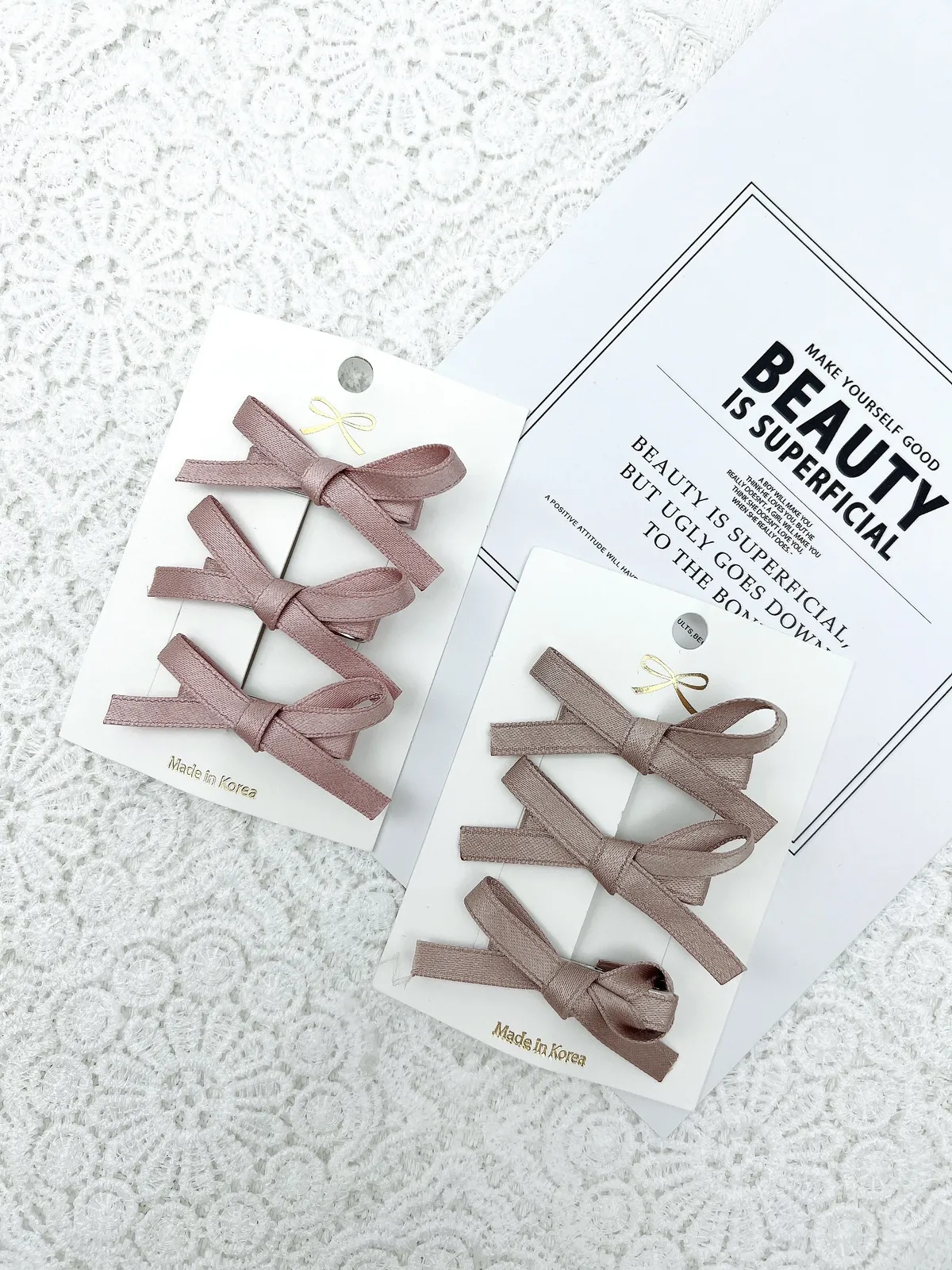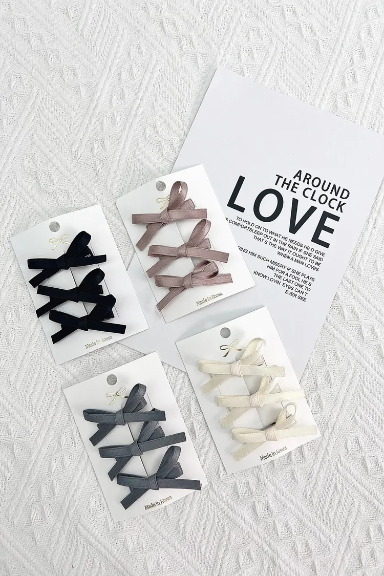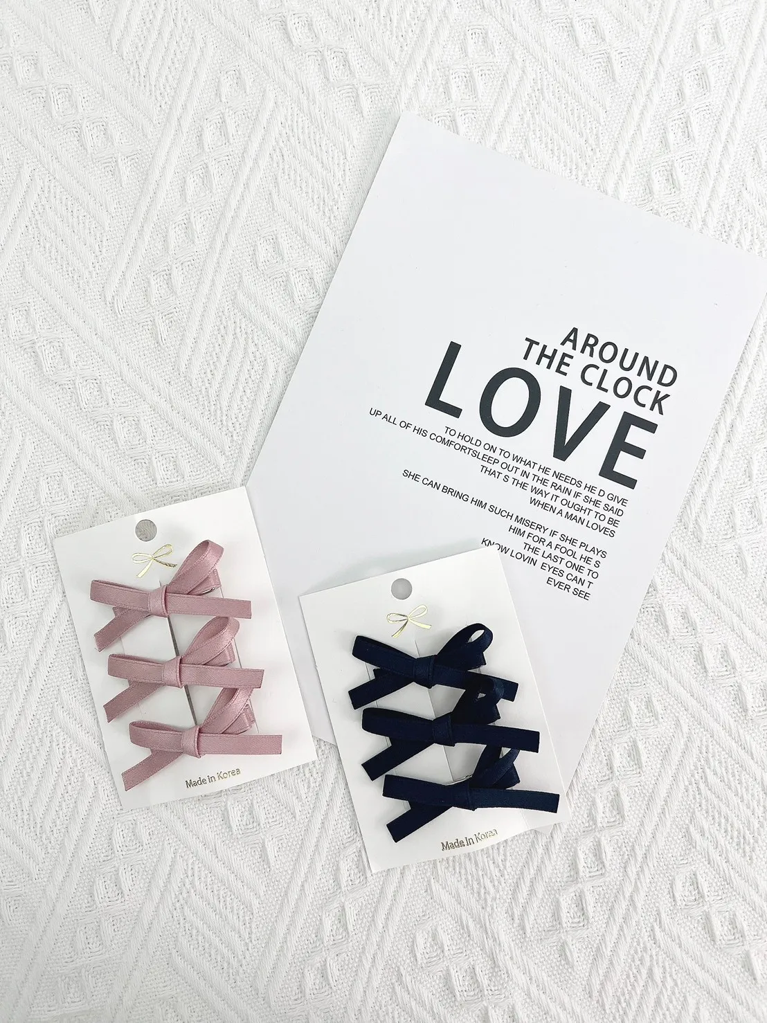 CS234許願款小蝴蝶結緞帶髮夾組(三個一組) 粉 米 黑 藍 紫 灰 奶茶 $99