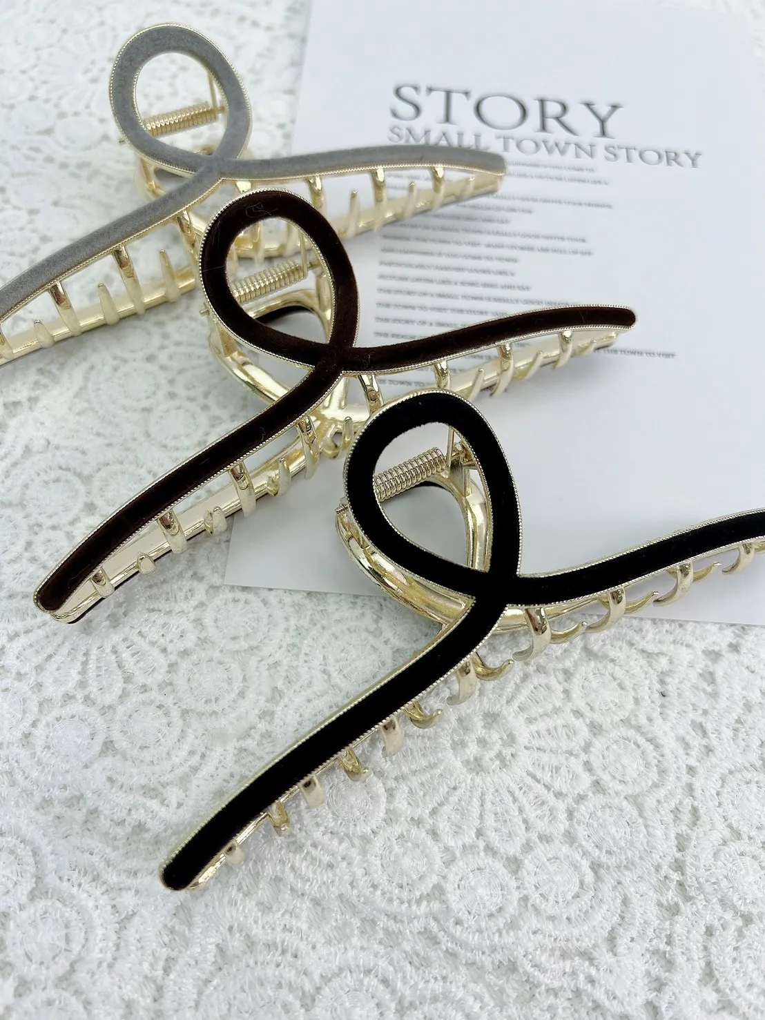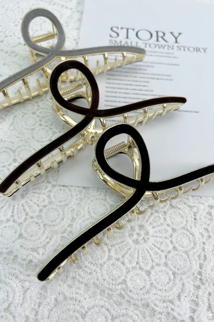 CS245蜜桃絨曲線金屬鯊魚夾 灰 咖 黑 $145
