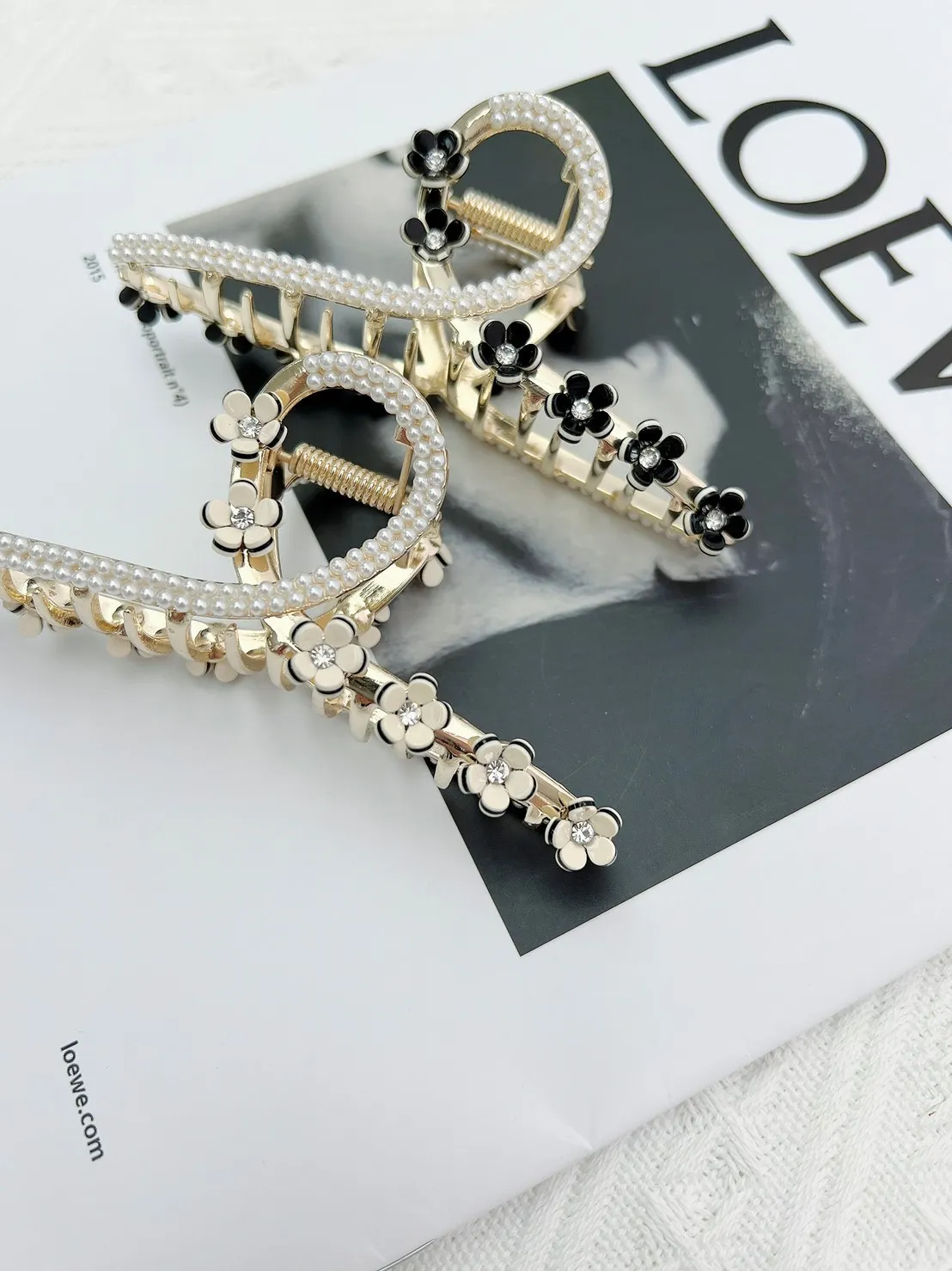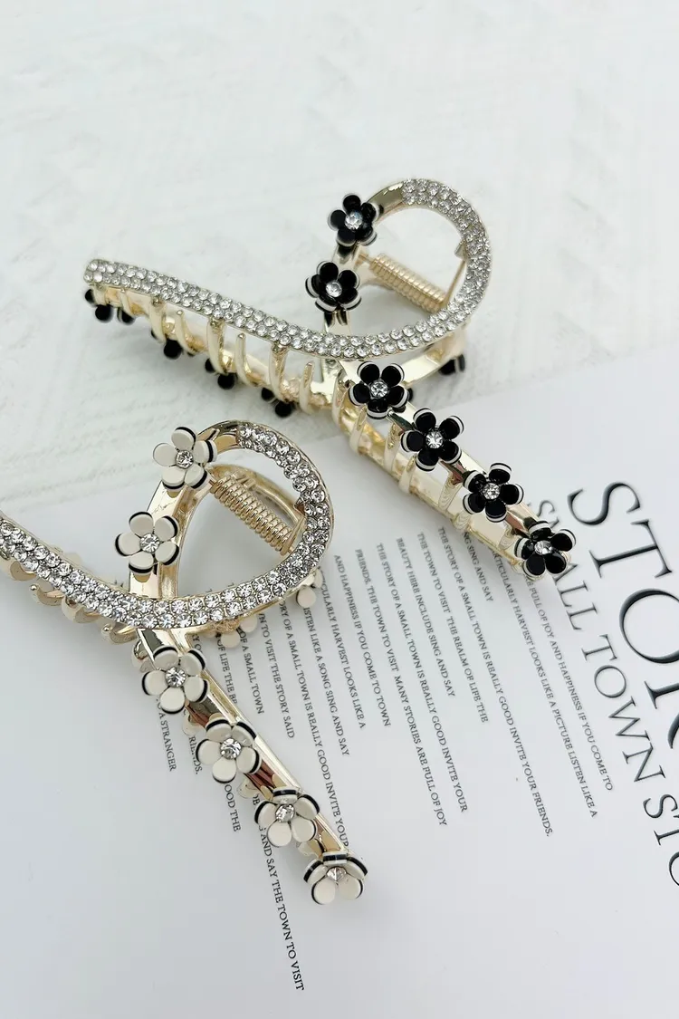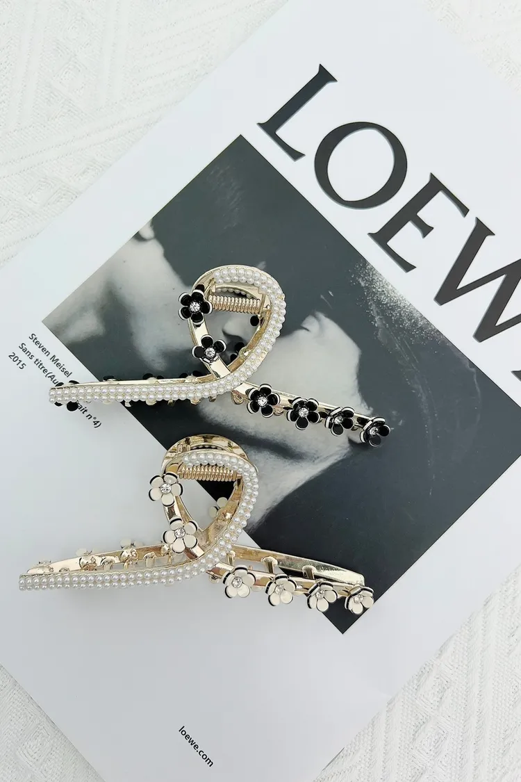 CS246美花鑽蕊精緻華麗曲線鯊魚夾 黑珍珠 白珍珠 黑鑽 白鑽 $155