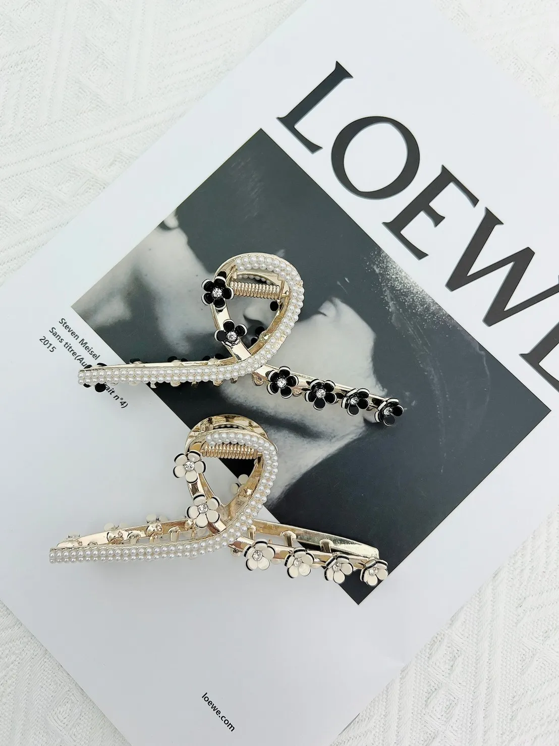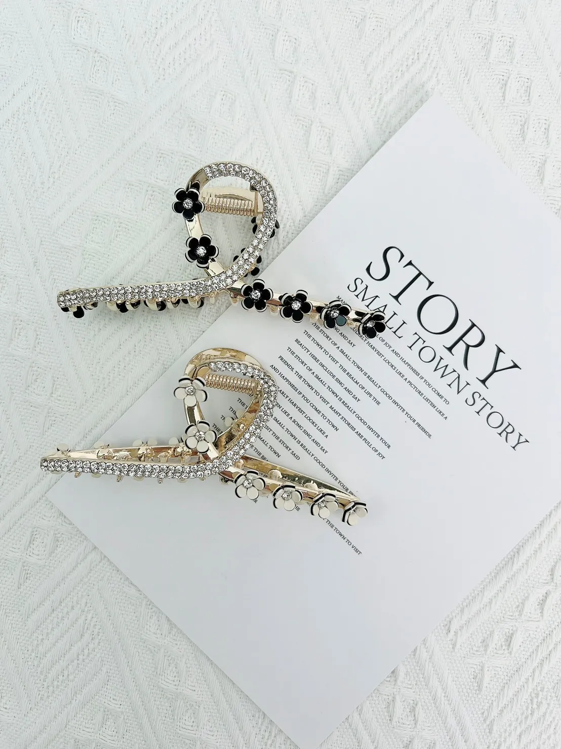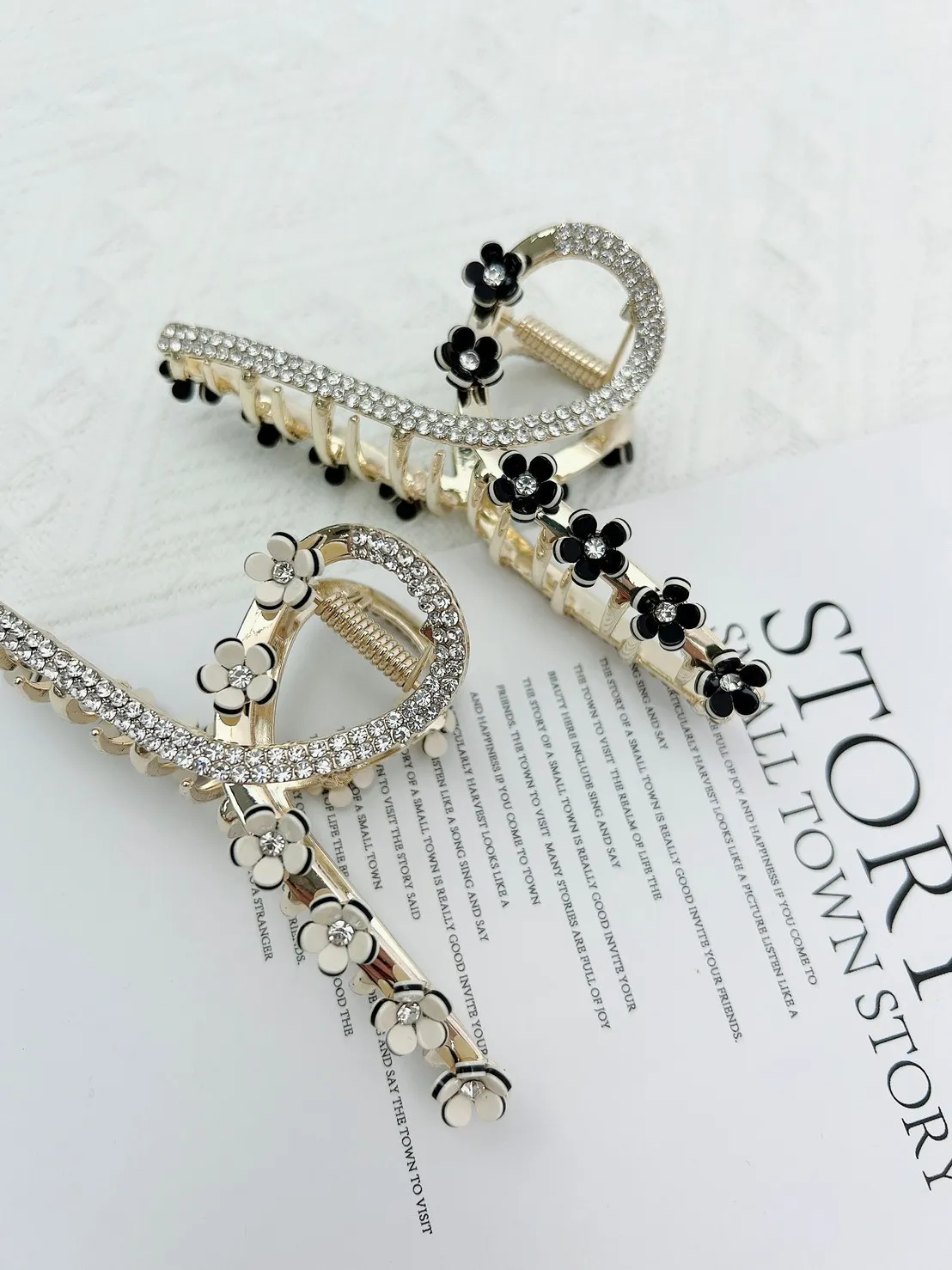 CS246美花鑽蕊精緻華麗曲線鯊魚夾 黑珍珠 白珍珠 黑鑽 白鑽 $155