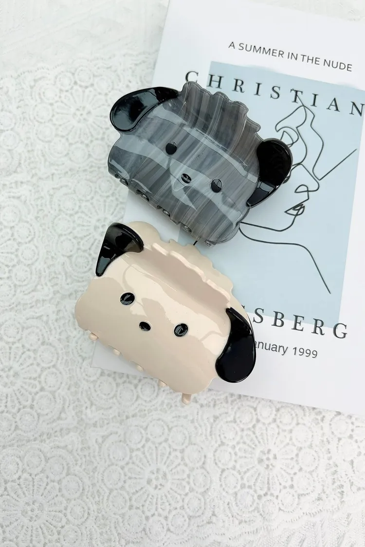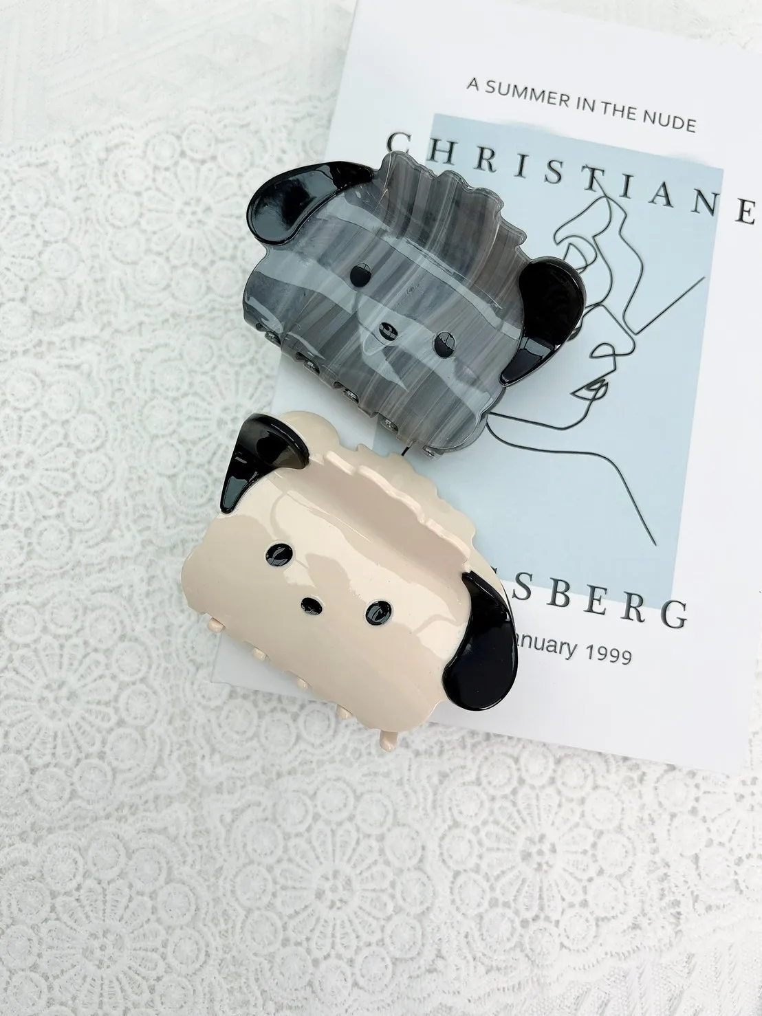 CS249可愛黑耳狗狗鯊魚夾 米 灰 $145
