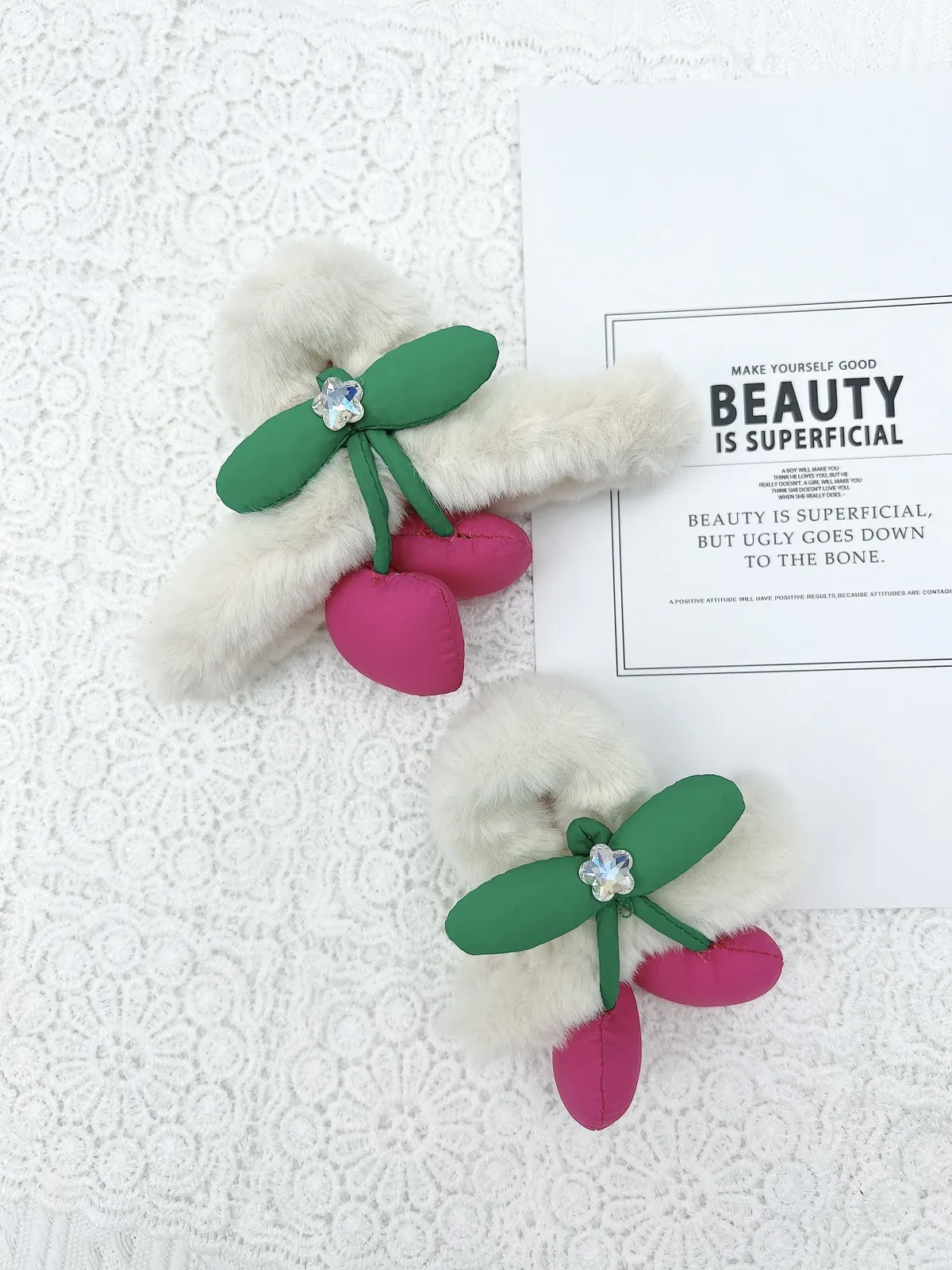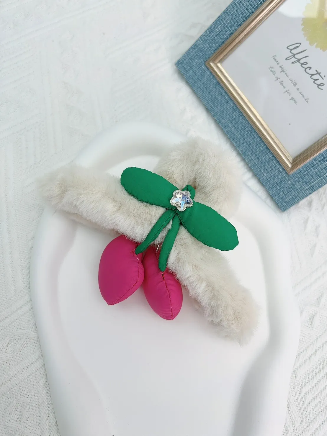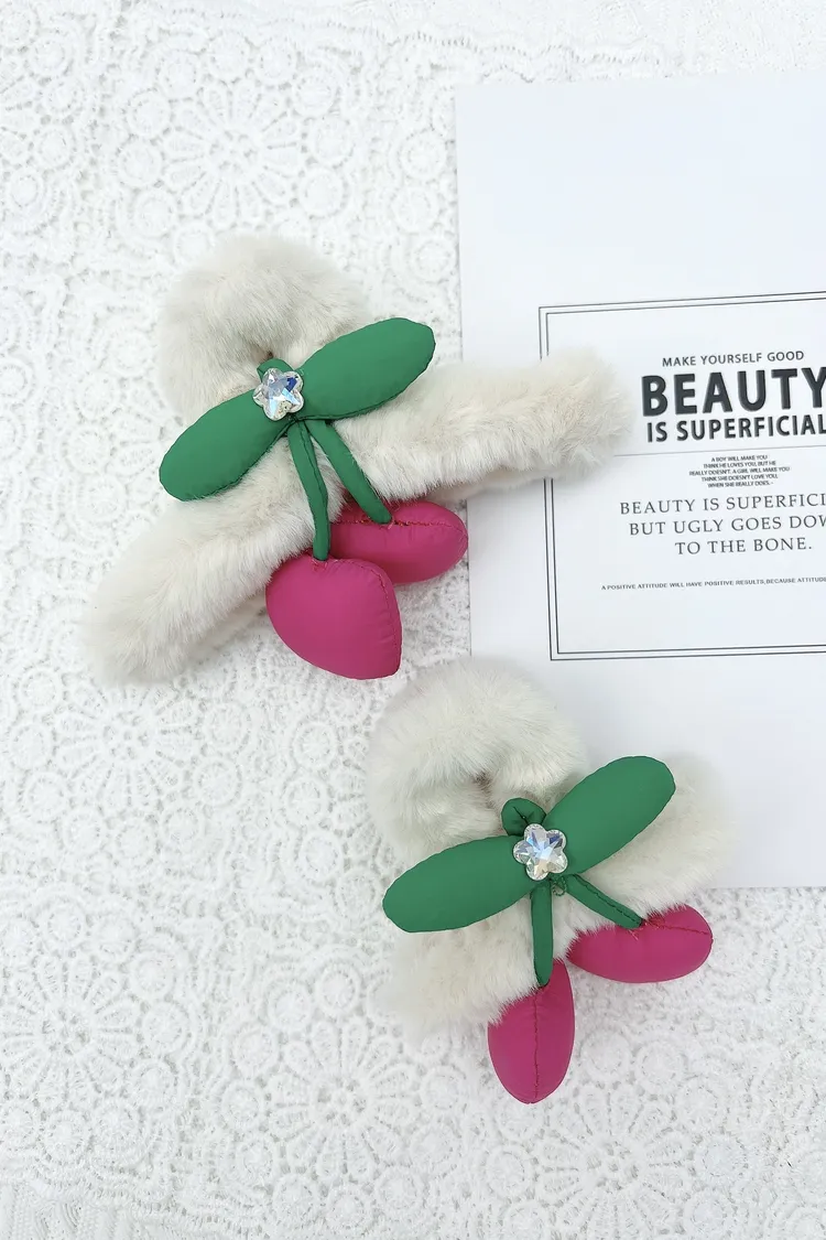 CS251櫻桃搖曳超好摸毛毛髮夾 小款 大款 $155