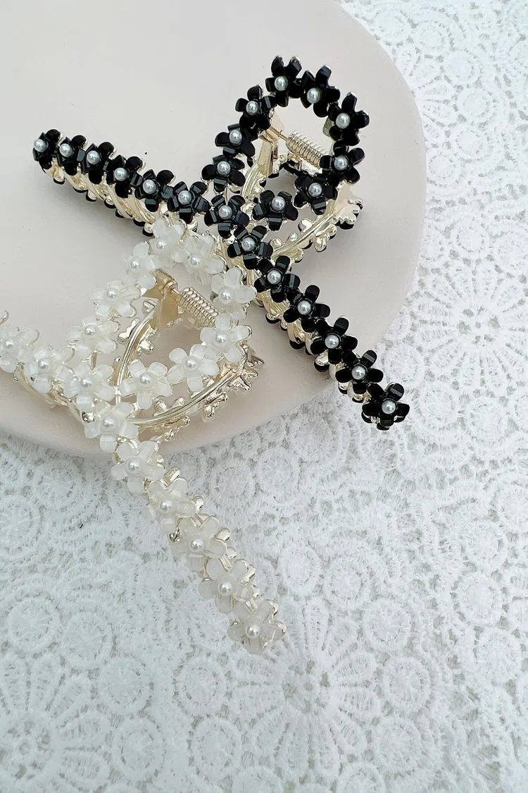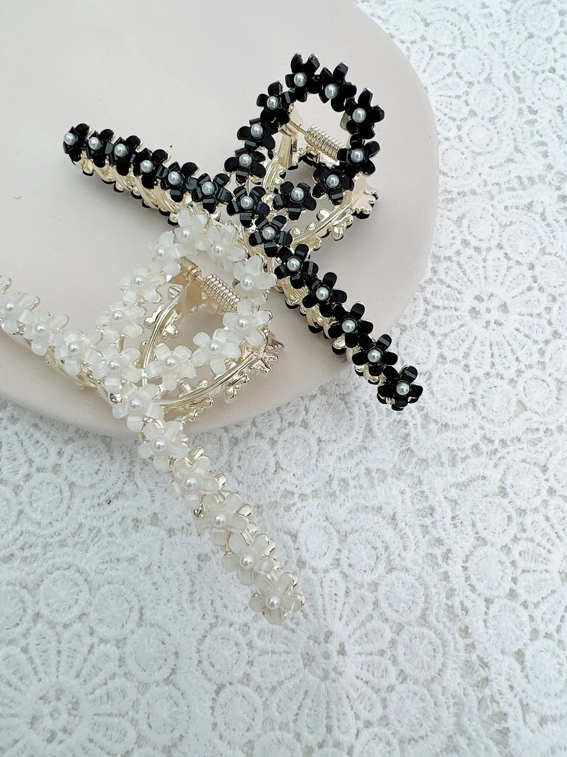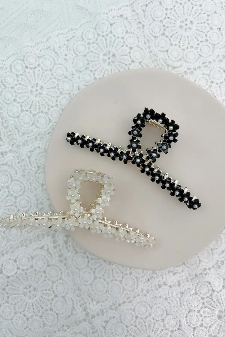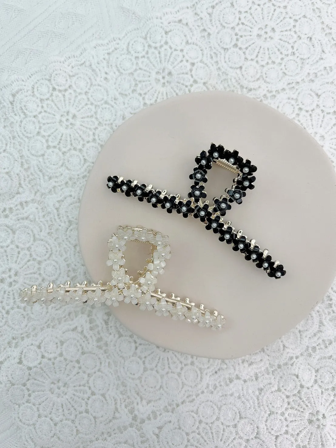 CS255精緻氣質小花滿滿鯊魚夾 米 黑 $185