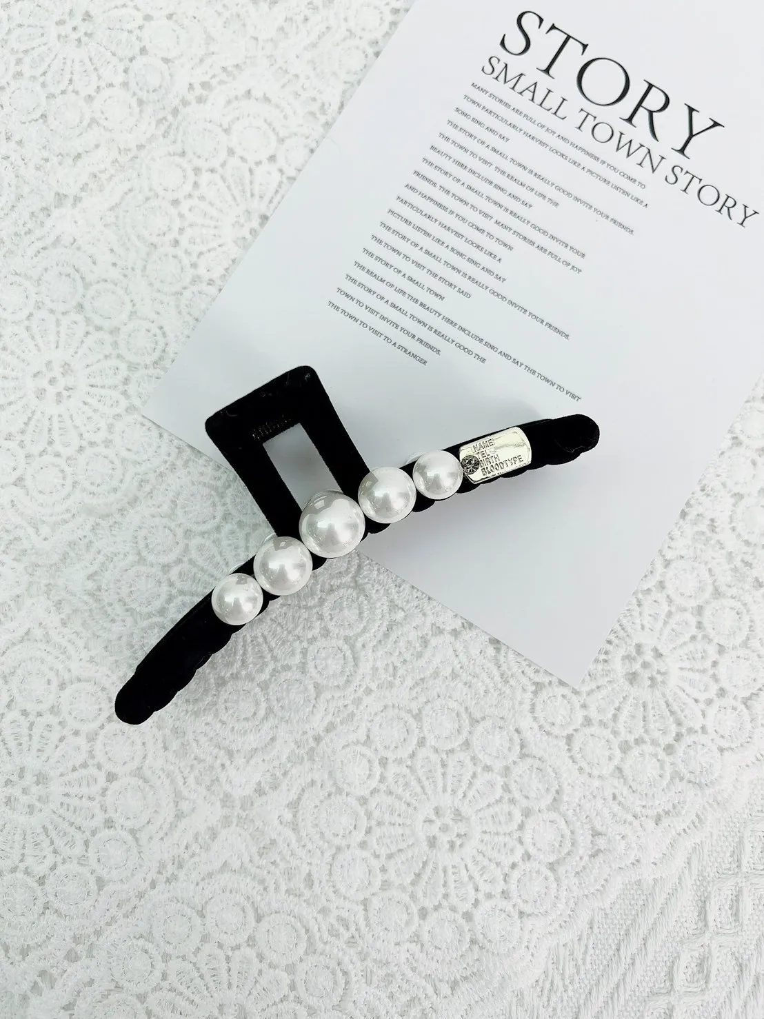 CS258推薦款方鑽珍珠麂皮絨面鯊魚夾 $ 166