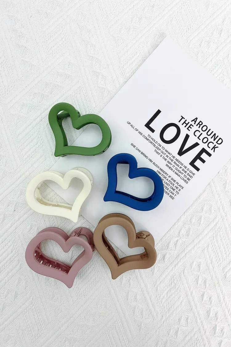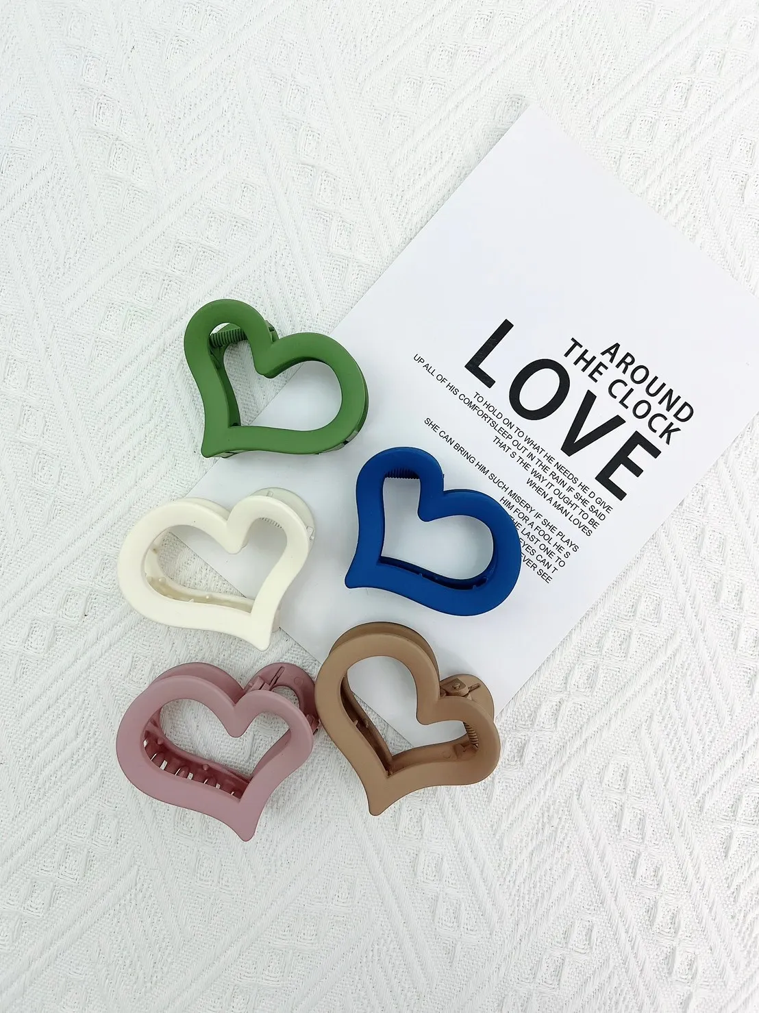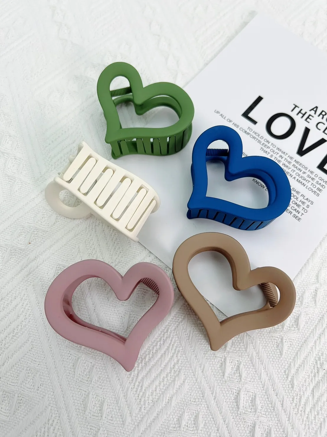 CS261柔美霧面簍空愛心鯊魚夾 白 粉 綠 藍 咖 $77