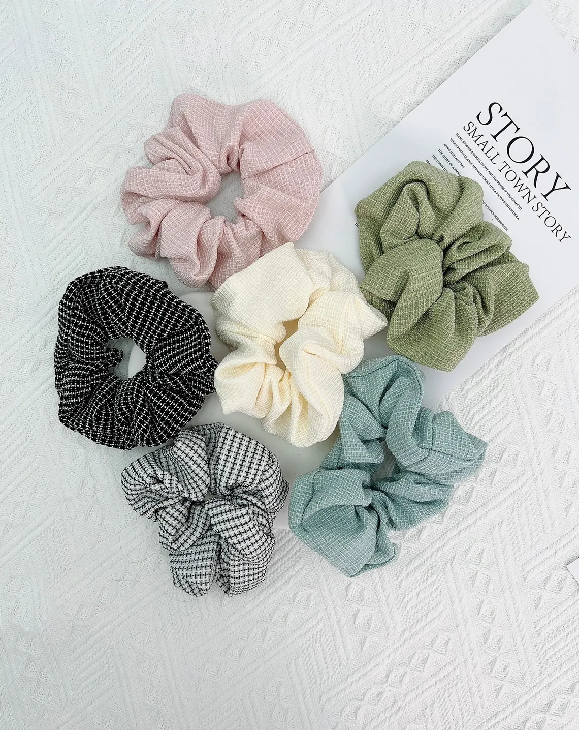 CS267韓製質感扭結大腸圈 格紋白 格紋黑 粉 米 藍 綠 $77