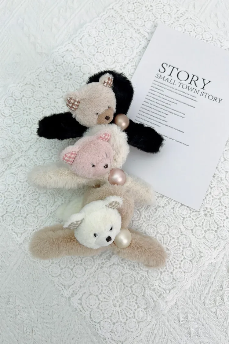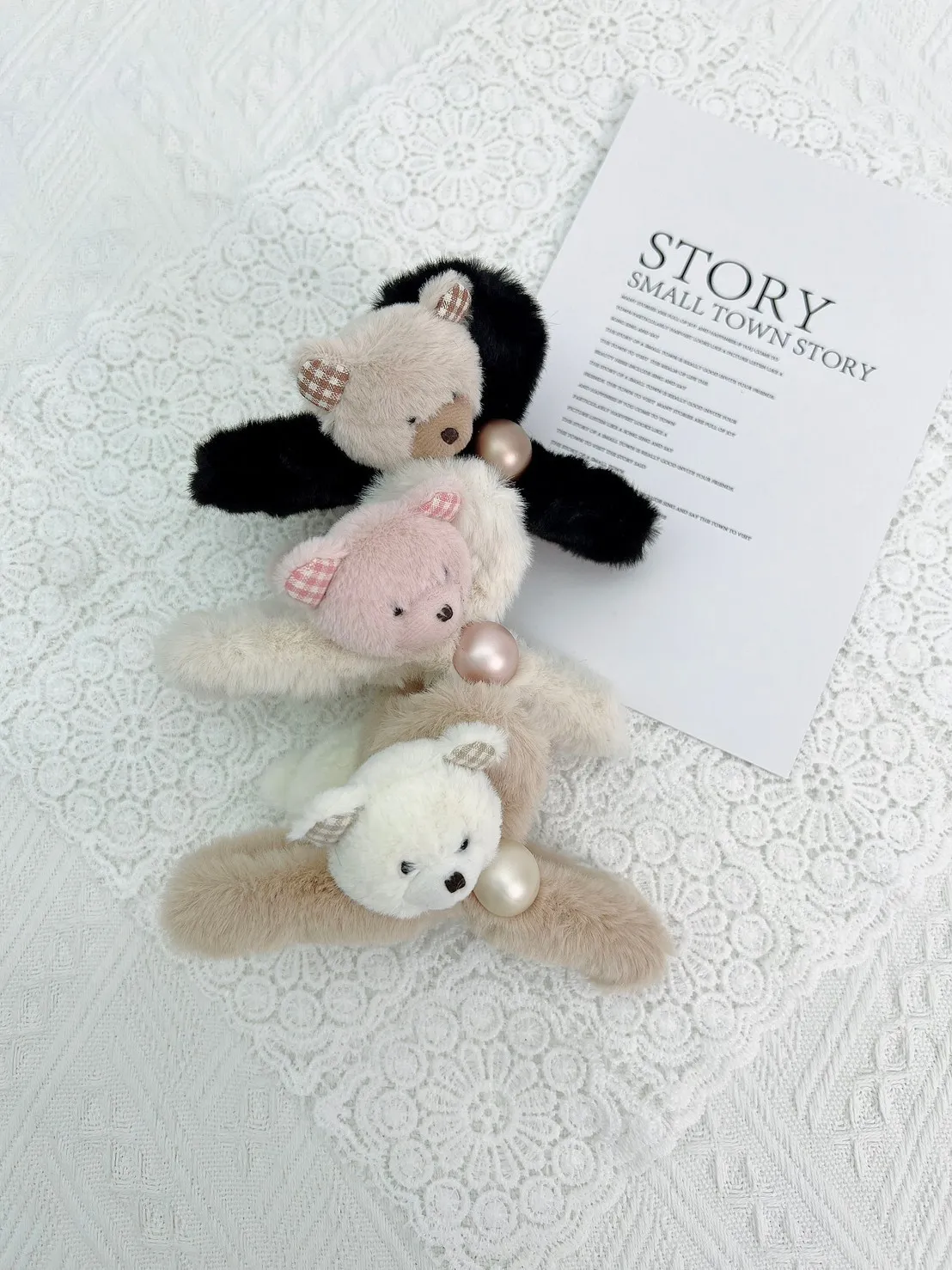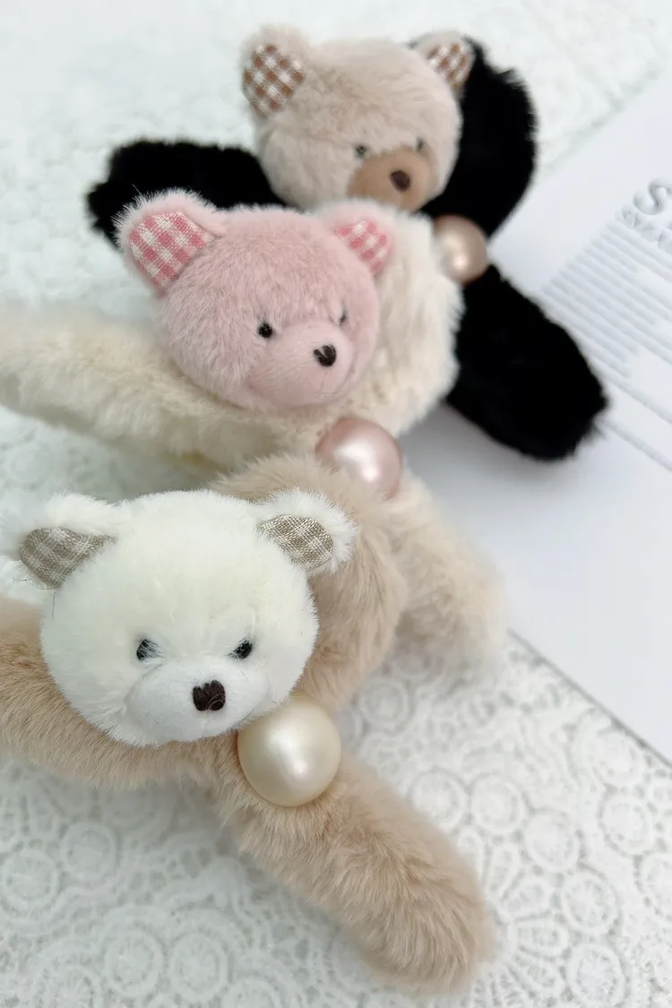 CS270超好摸可愛熊熊毛毛曲線鯊魚夾 米 黑 奶茶 $160
