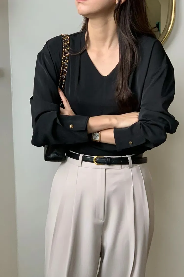 推薦款 聚酯 視覺實體高級感佳 冰涼舒服 雪紡絲滑感 袖口有釦