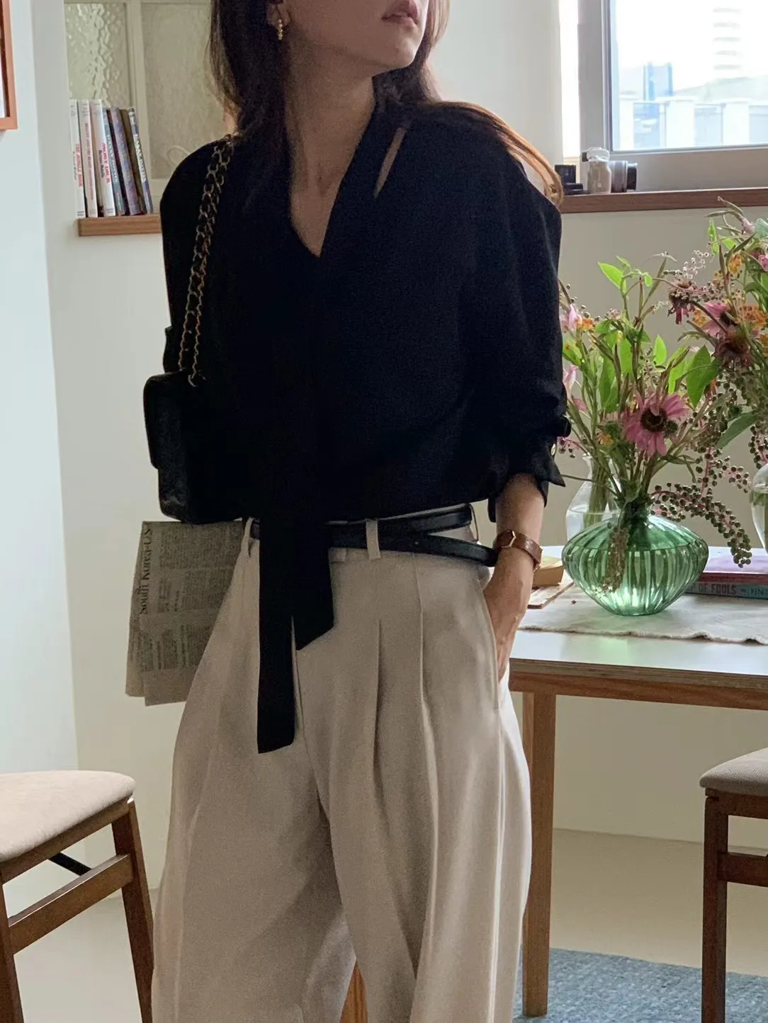 綁帶可拆 不易皺面料免整燙 面料直線條微微透光 金釦