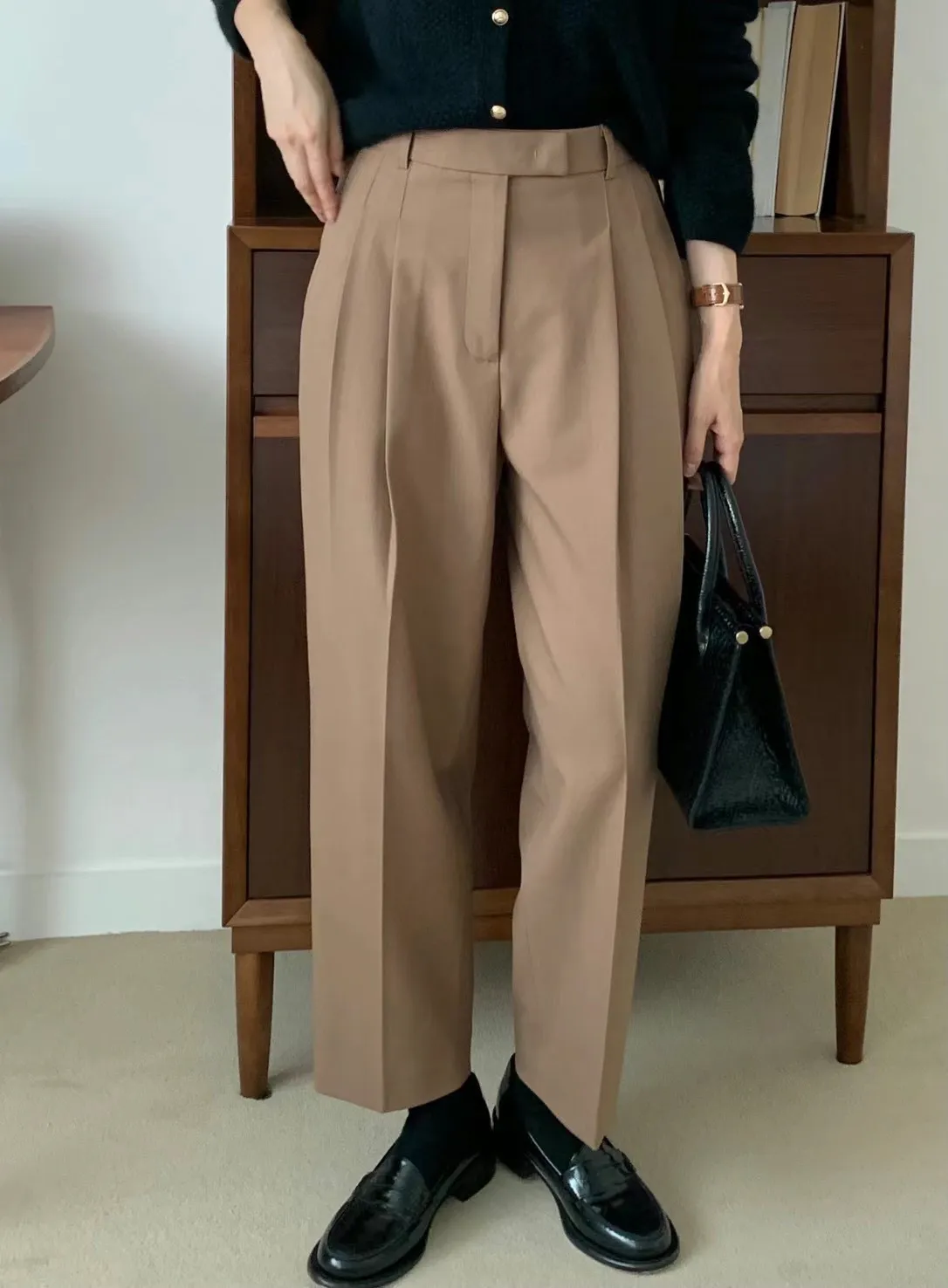 CS286質感側腰藏釦九分褲 米 咖 灰 黑 S M L 線上價$1230 官網價$1260