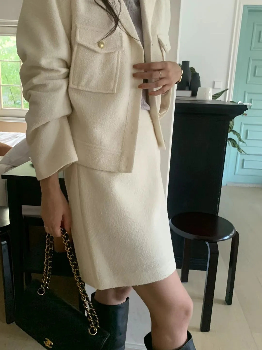 CS291質感羊毛短裙 白 黑 S M 線上價$1050 官網價$1080