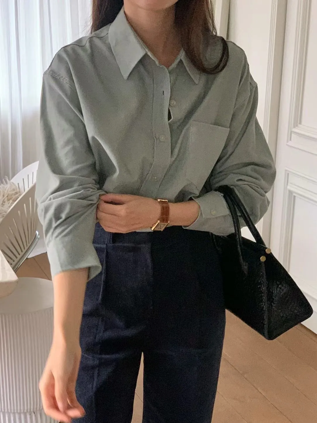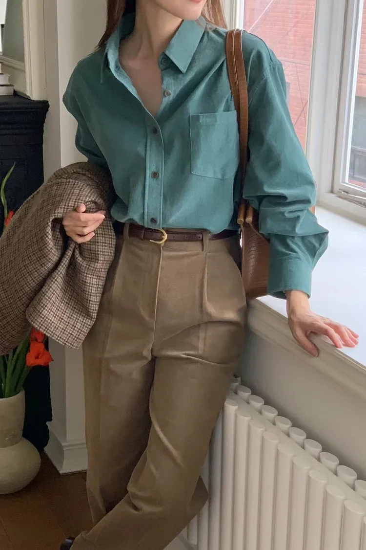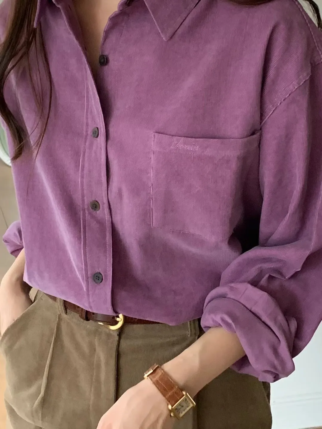 CS296驚艷款薄款單口袋質感襯衫 米 咖 藍 綠 紫 線上價$1050 官網價$1080
