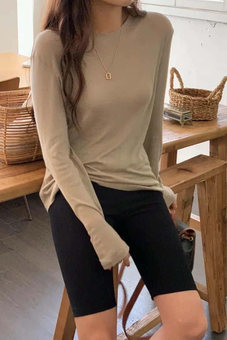 CS301天絲羊毛圓領長袖內搭衣 白 奶茶 綠 藍 黑 線上價$620 官網價$650