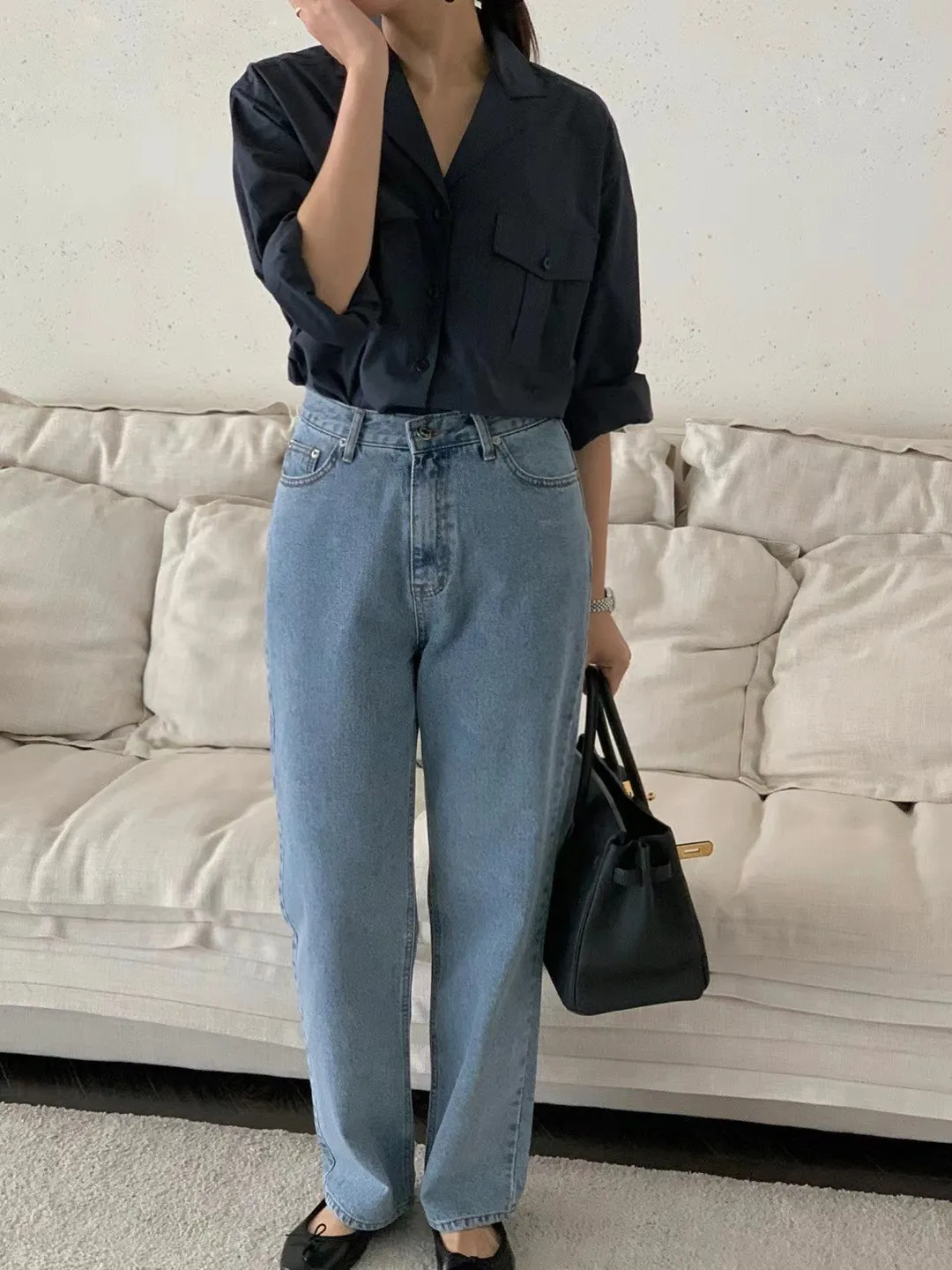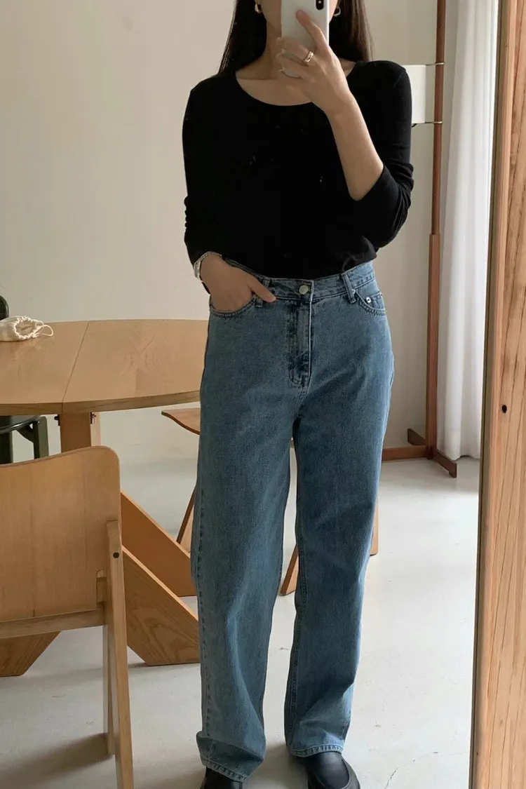 CS309高質感雪花感淺藍牛仔長褲 S M 線上價$1190 官網價$1220