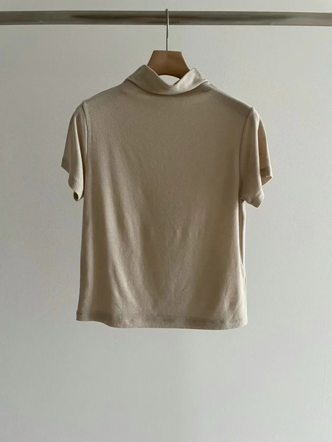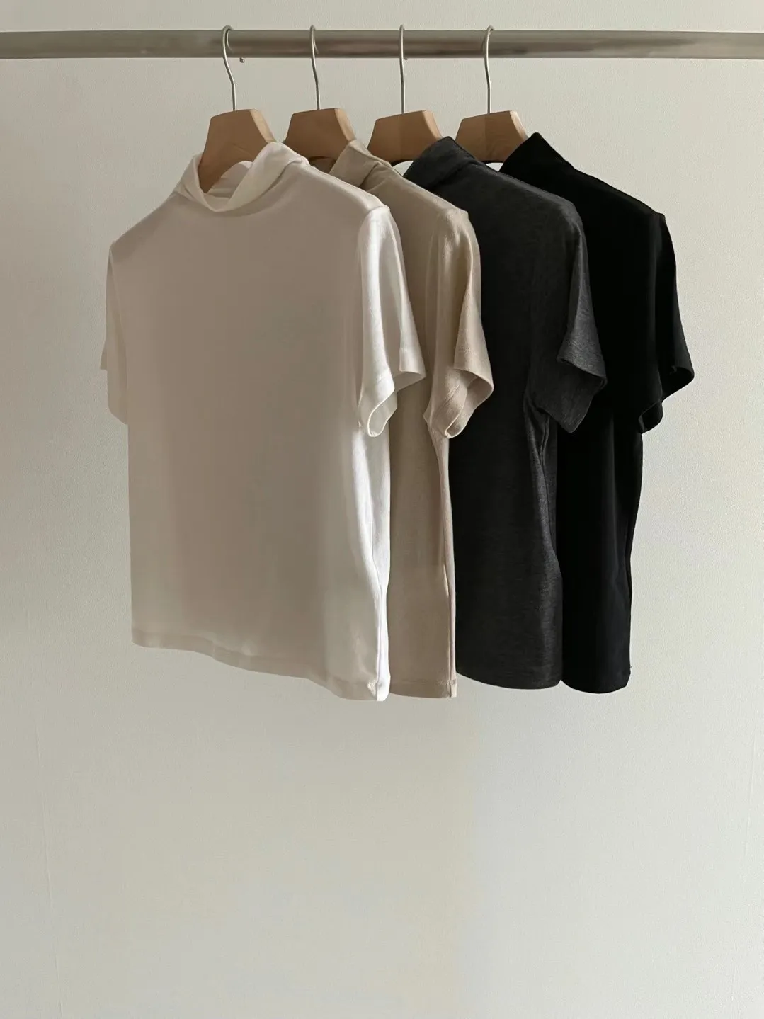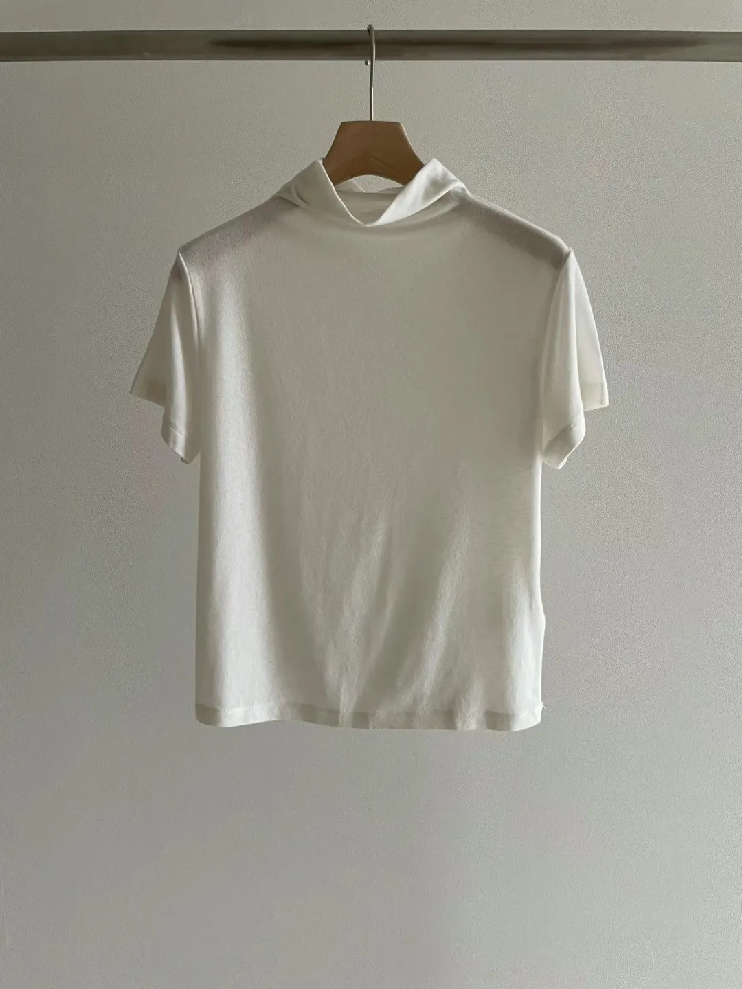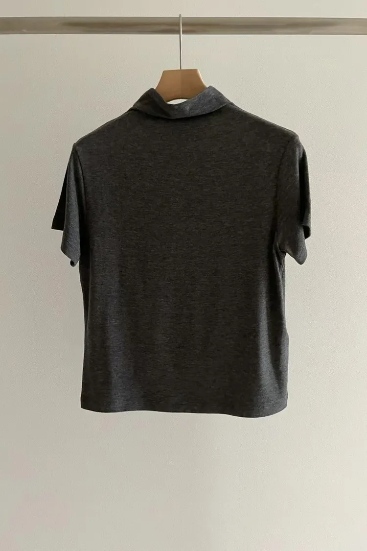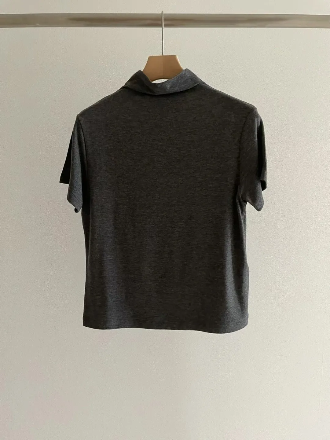 CS311薄款輕盈羊毛棉短領短袖上衣 白 奶茶 灰 黑 線上價$569 官網價$599