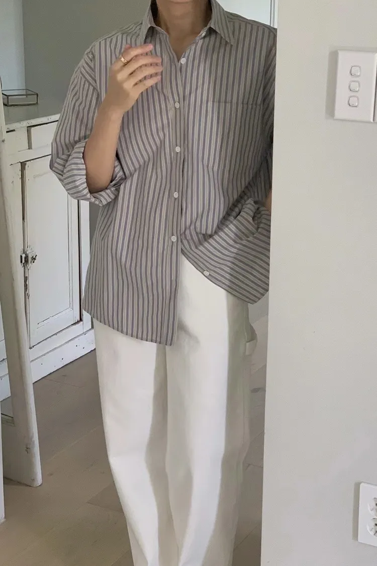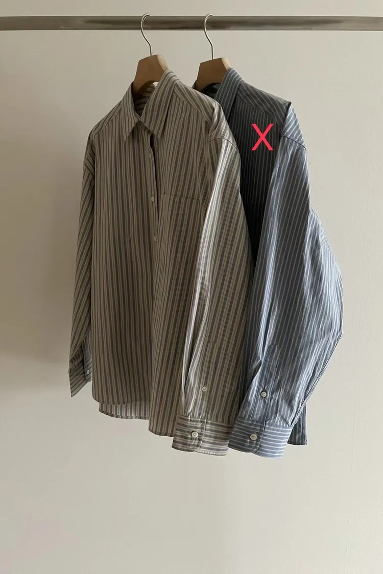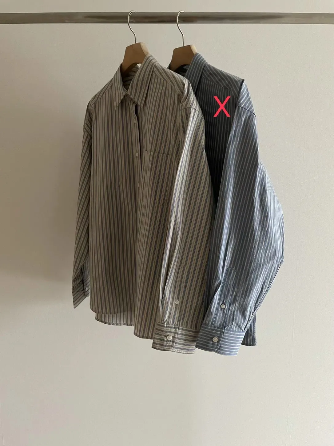 CS314復古直條紋單口袋灰藍色長袖襯衫 線上價$1960 官網價$1990