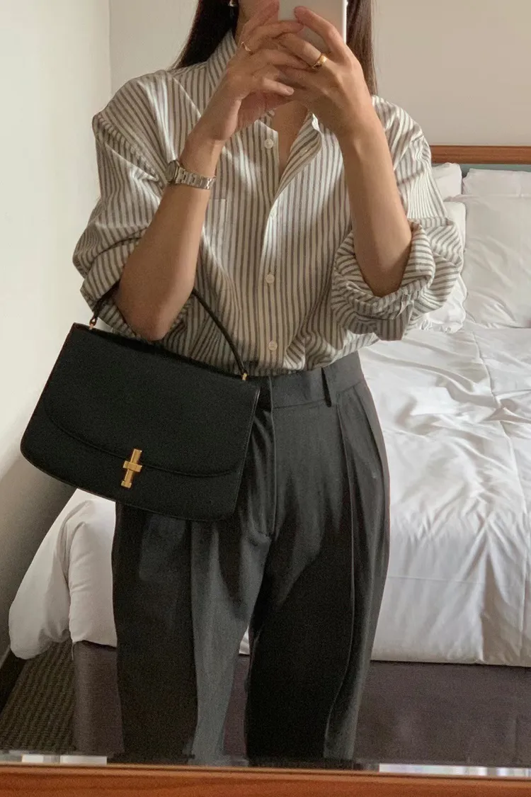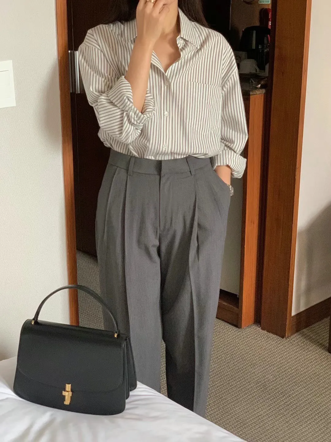 CS316灰線直條奶茶底長袖襯衫 線上價$1960 官網價$1990