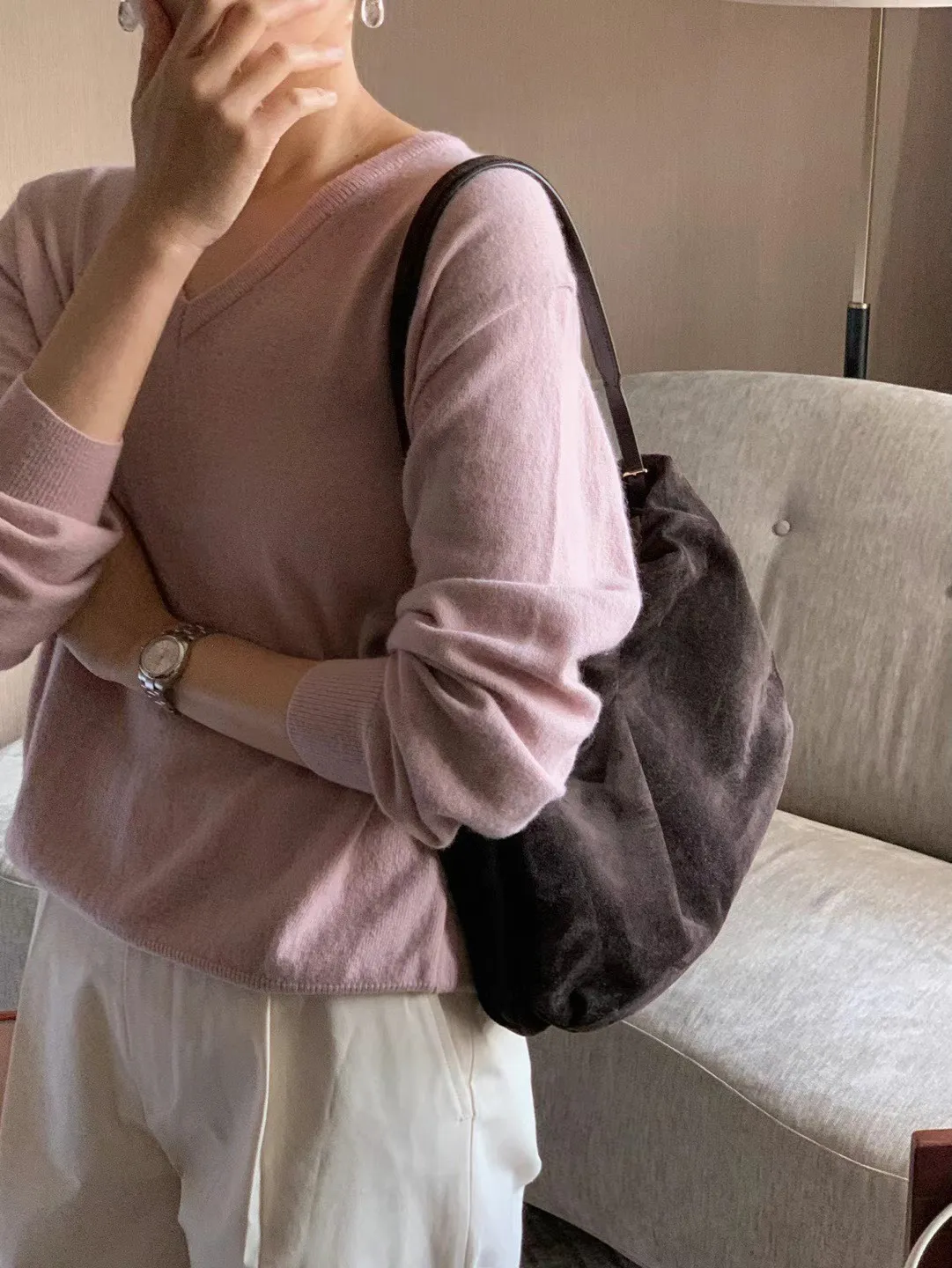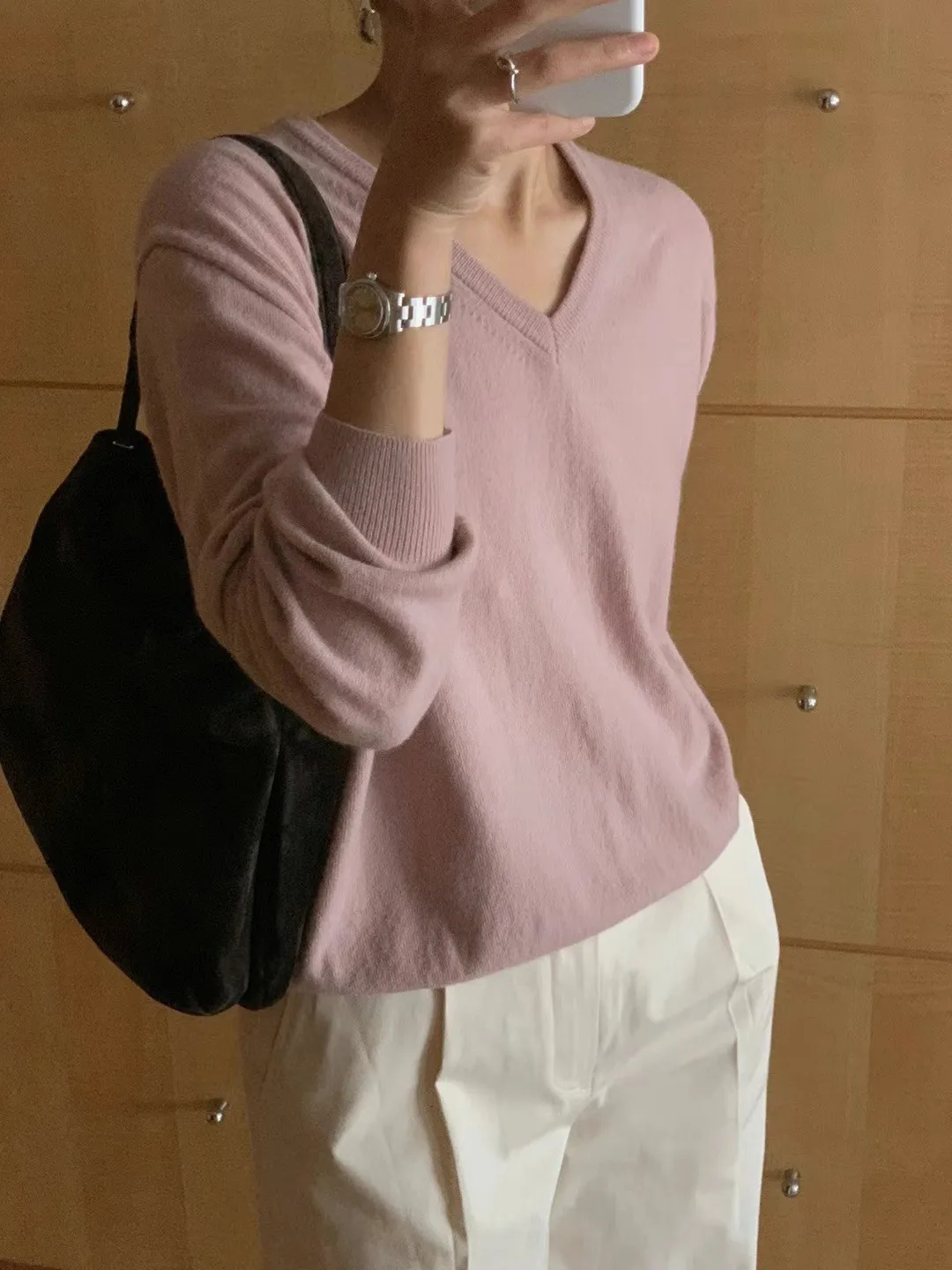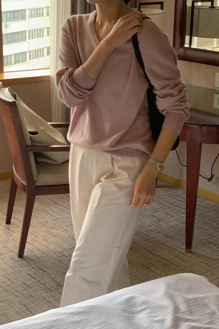 CS317粉色V領喀什米爾羊毛針織衫 $1250