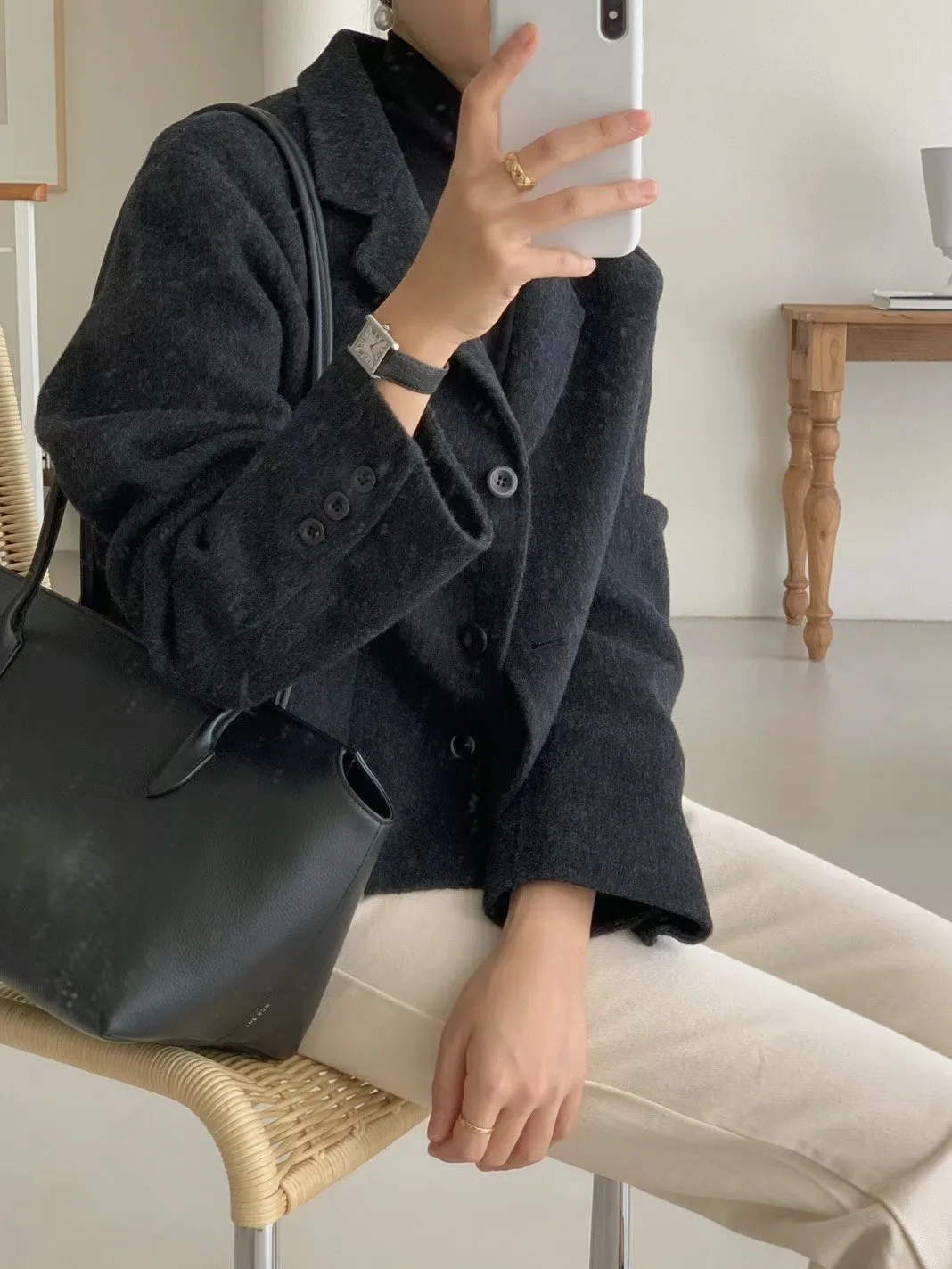 CS319高級感羊毛西裝外套 灰 咖 線上價$3290 官網價$3320