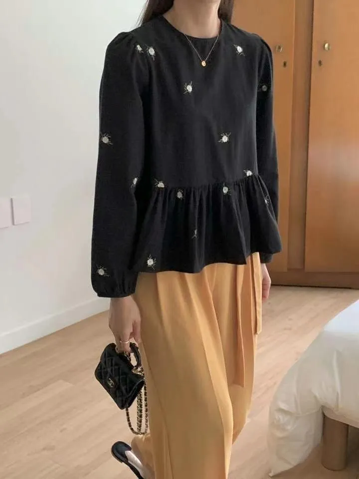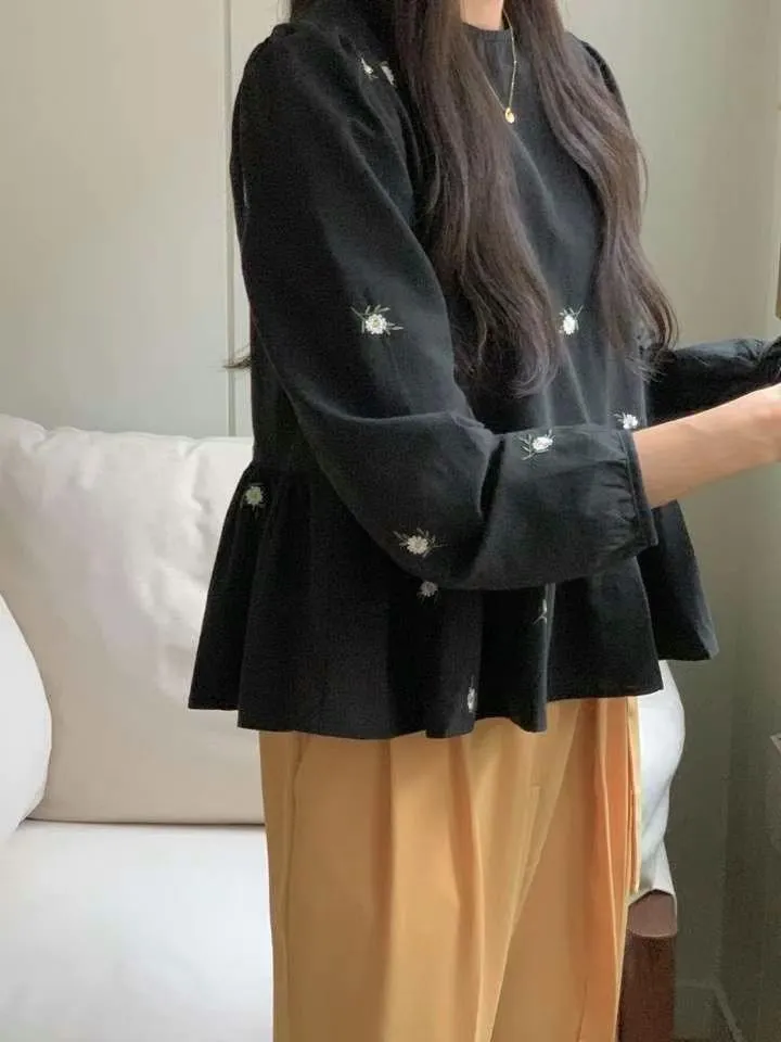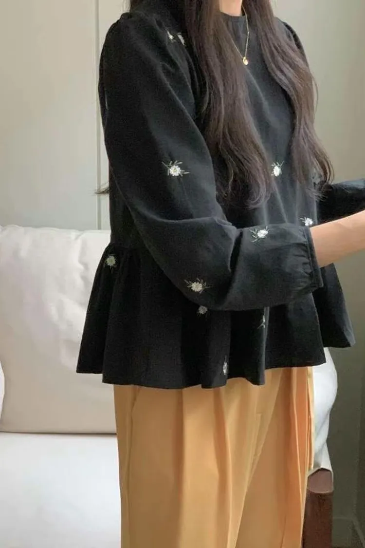 CS325小花刺繡娃娃裝上衣 米 黑 線上價$860 官網價$$890