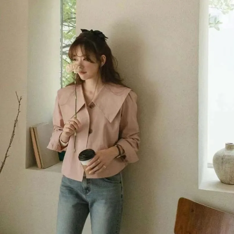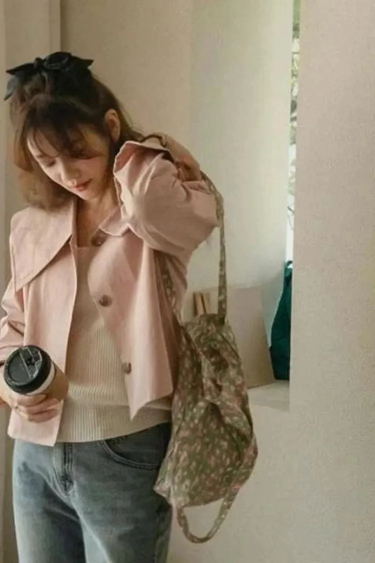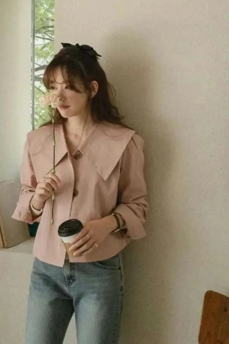 CS327氣質翻領短版排釦美衣 米 粉 奶茶 線上價$830 官網價$860