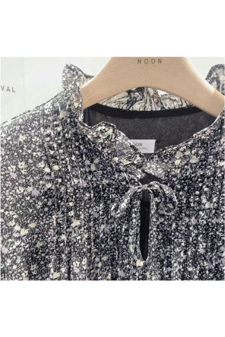 CS341質感小碎花胸綁帶縮腰洋裝 白 黑 線上價$ 1070官網價$1100