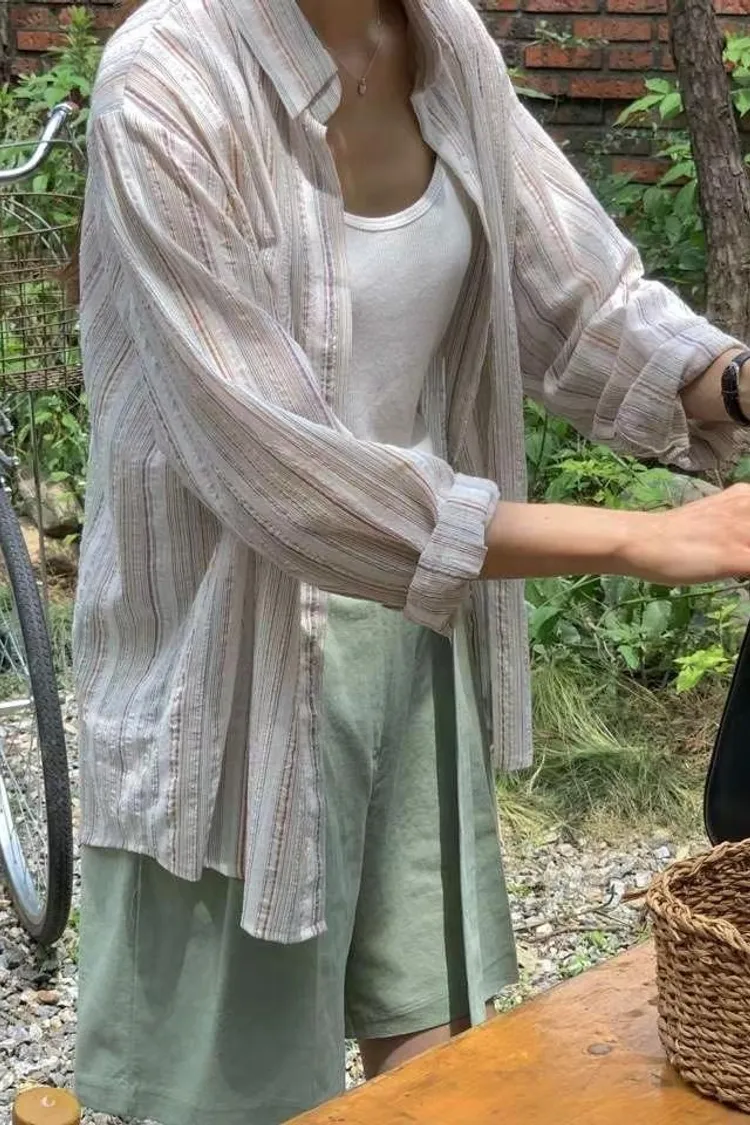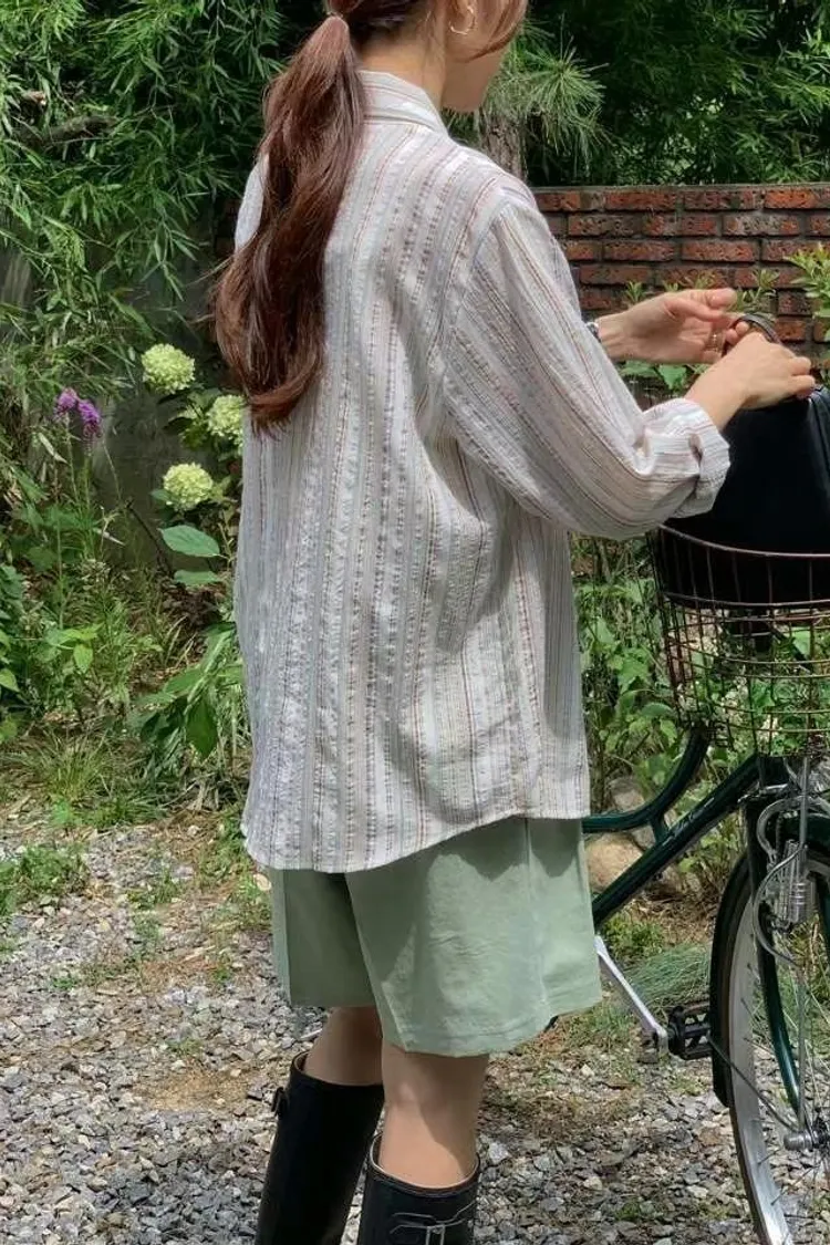 CS348薄款條紋襯衫(袖口底色分色) 白 灰 線上價$740 官網價$770