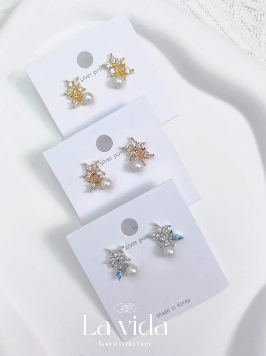 CS358星花簍瓣鑽珍珠耳環 金 銀 玫瑰金 耳針$220 耳夾(矽膠夾)$240