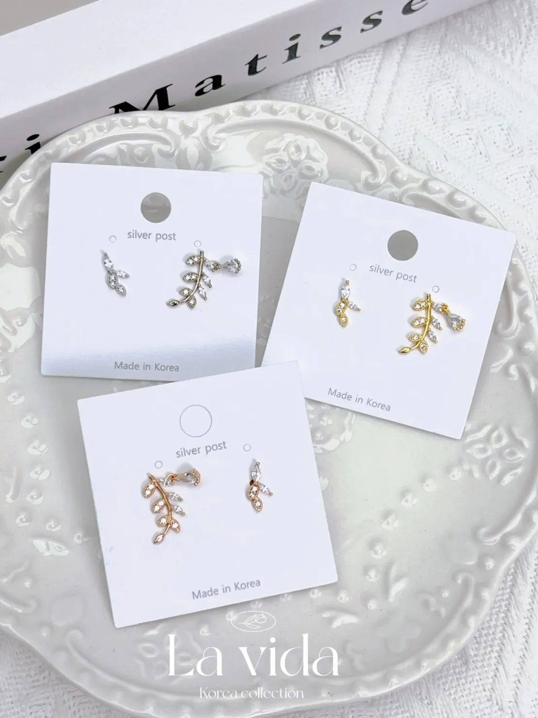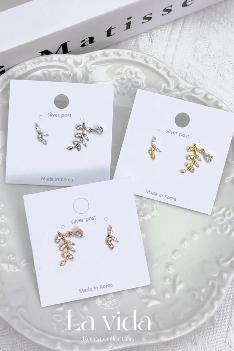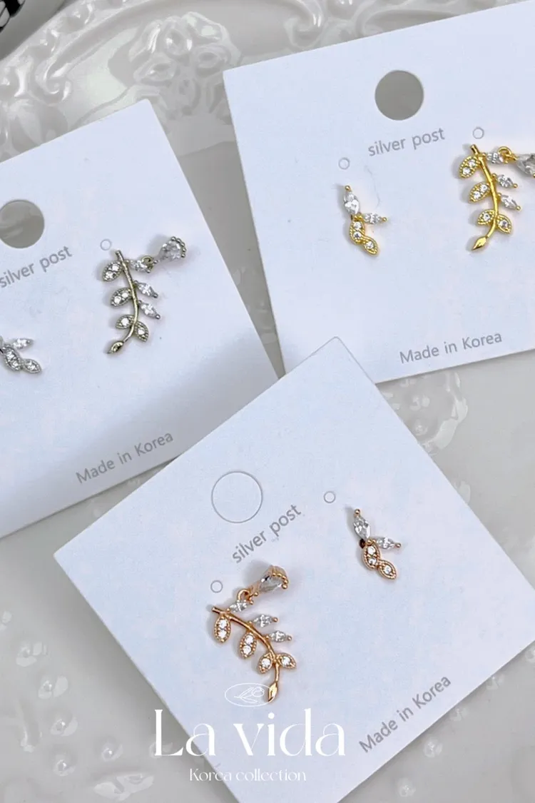 CS366希臘女神精緻桂冠小垂鑽不對稱耳環 金 銀 玫瑰金 耳針$230 耳夾(矽膠夾)$250