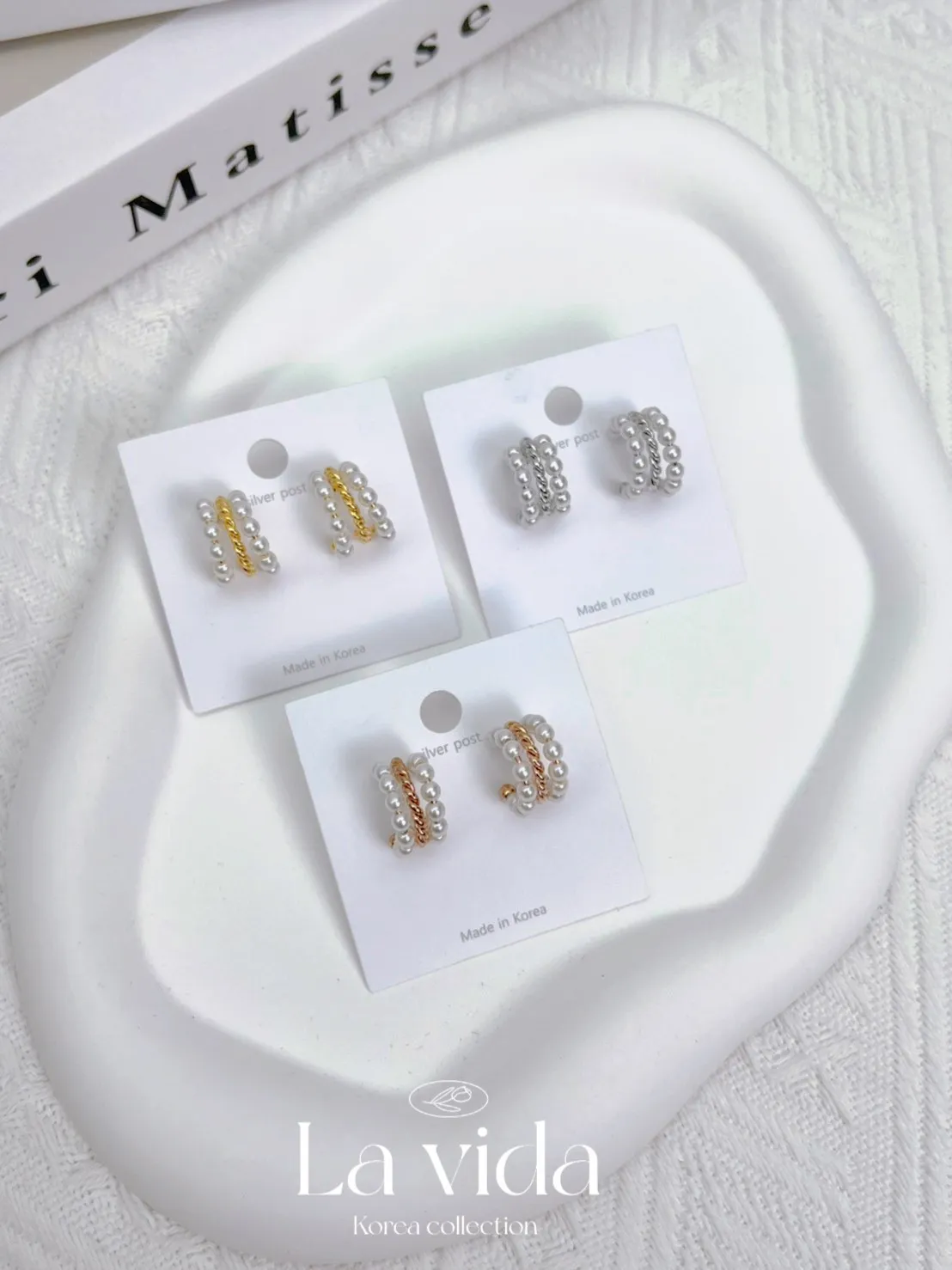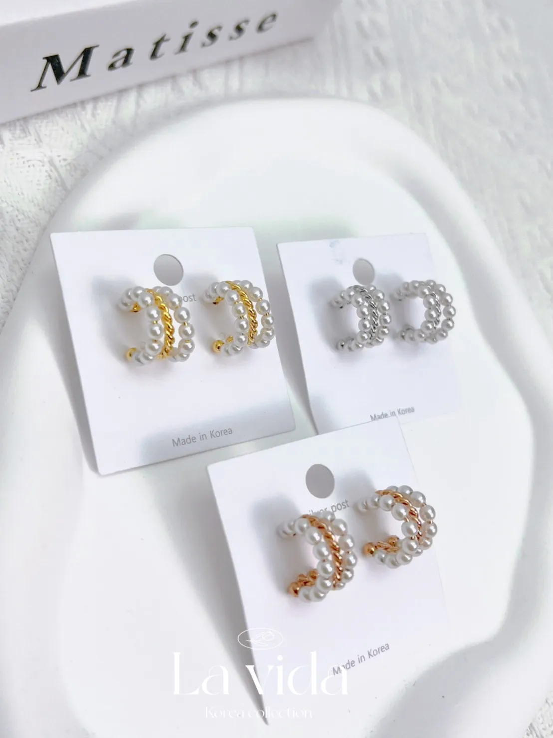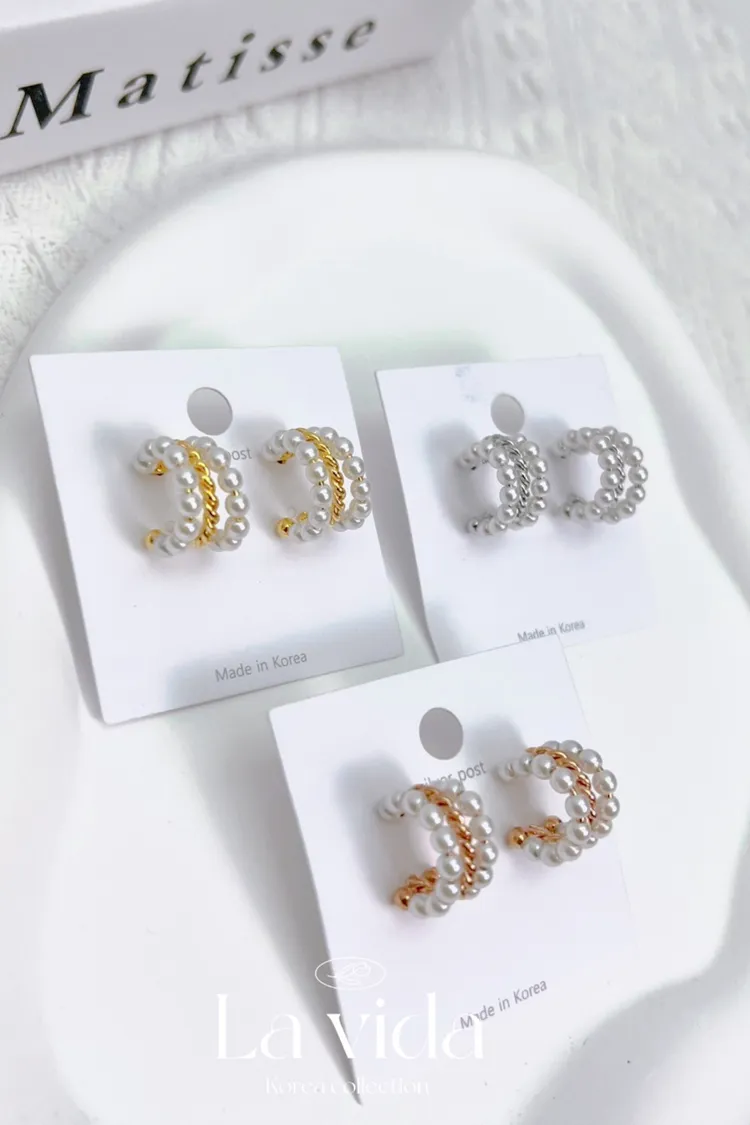 CS368麻花扭結珍珠三環戒環式耳環(只有耳針款) 金 銀 玫瑰金 $245