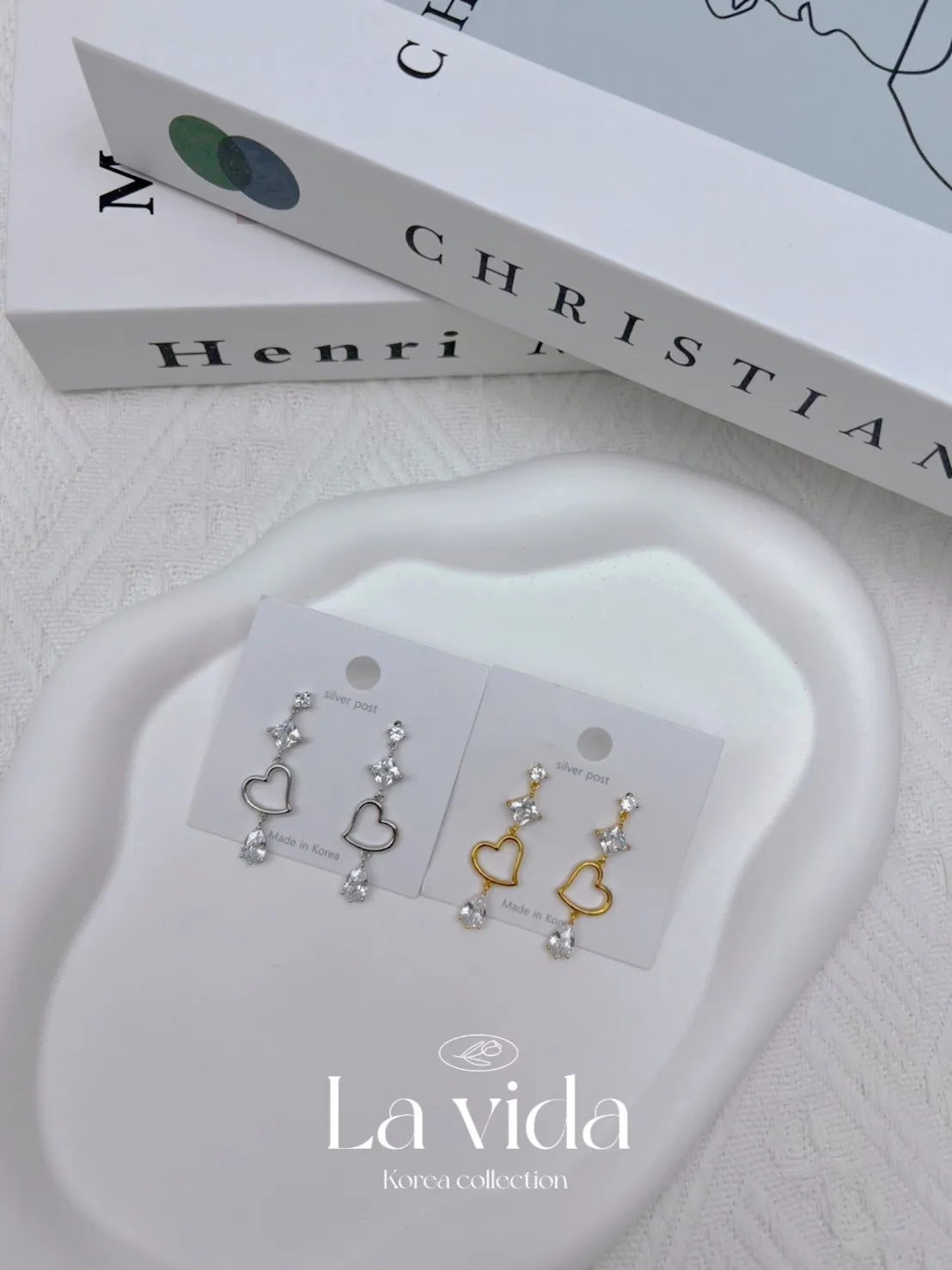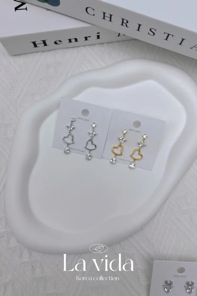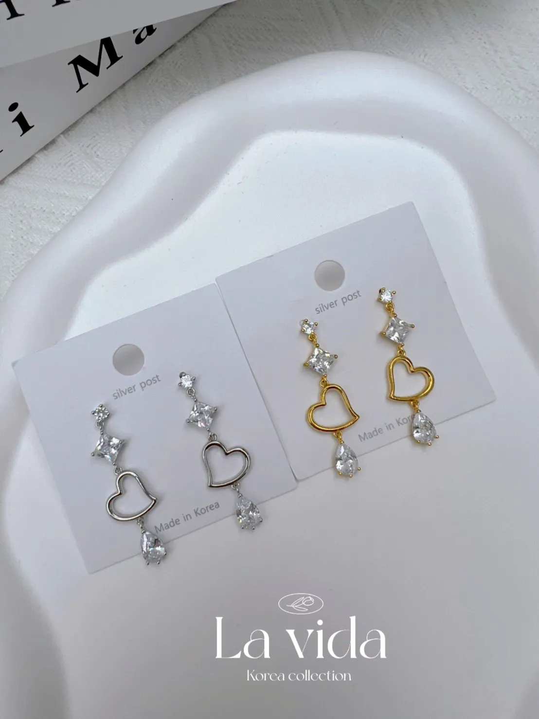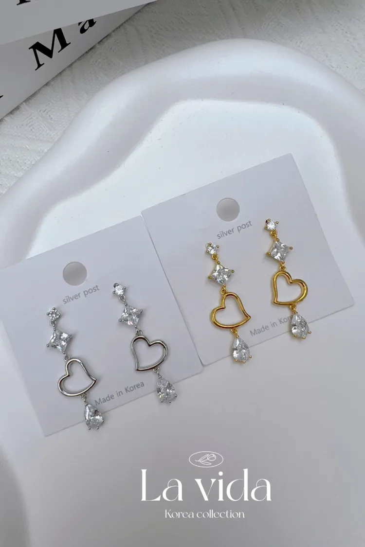 CS369簍空愛心菱形鋯石垂墜耳環 金 銀 玫瑰金 耳針$240 耳夾(螺旋夾)$260