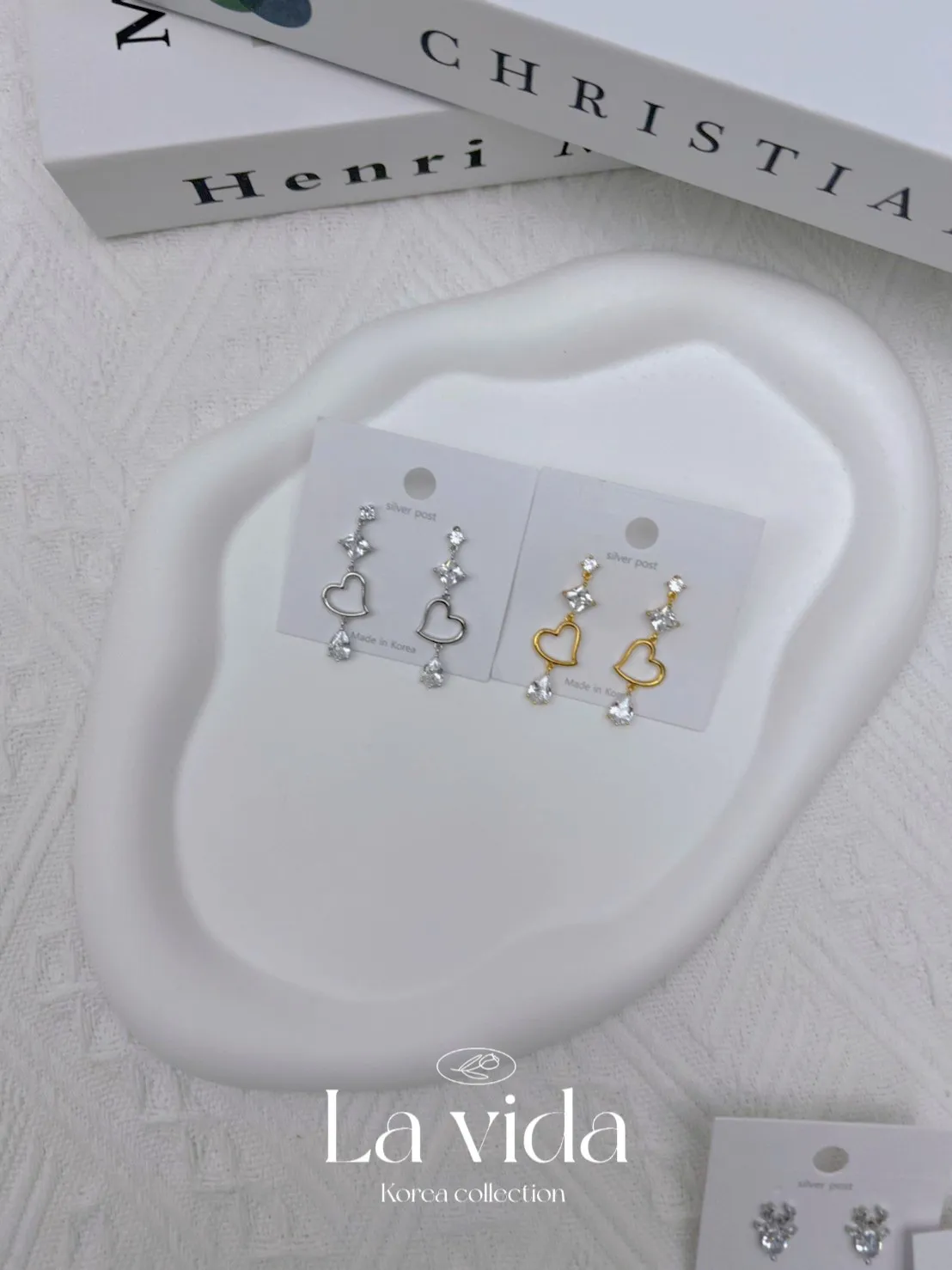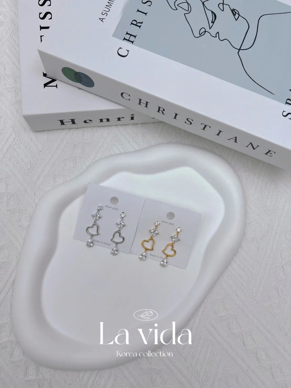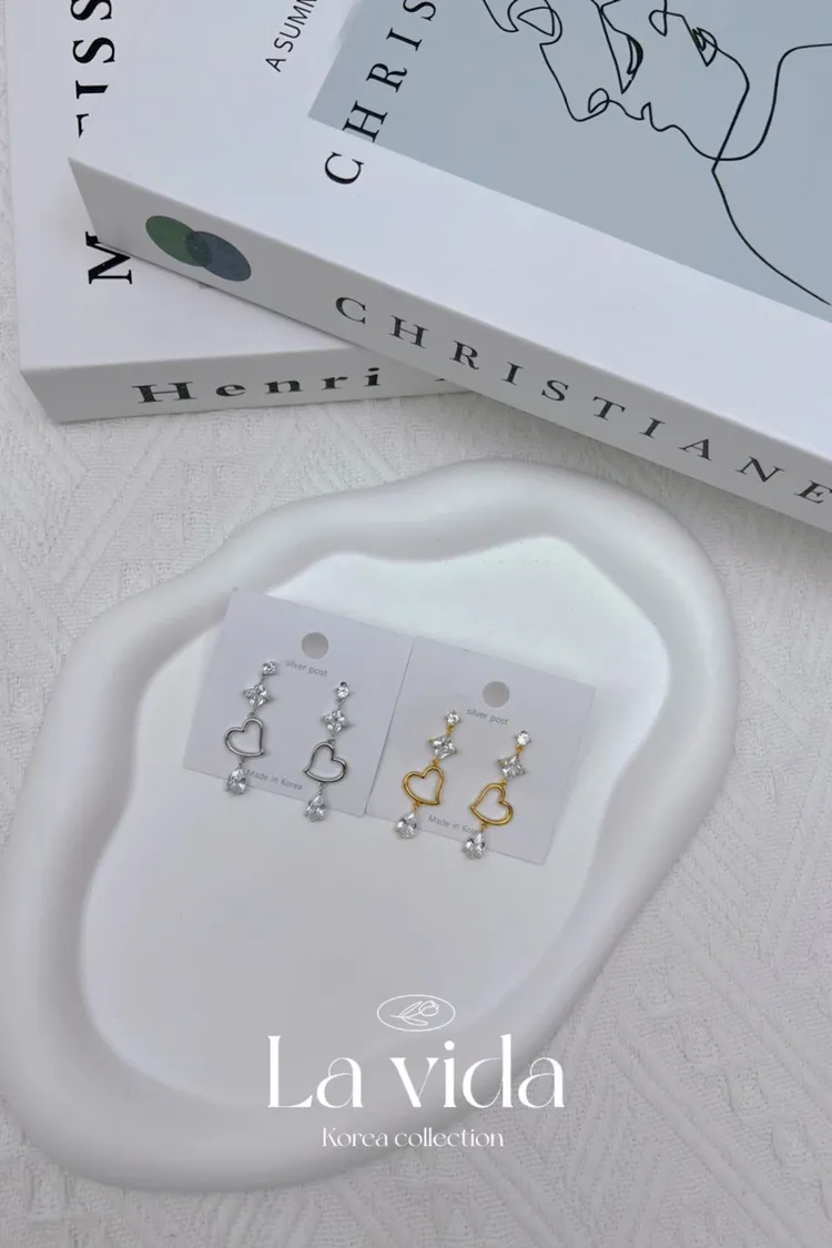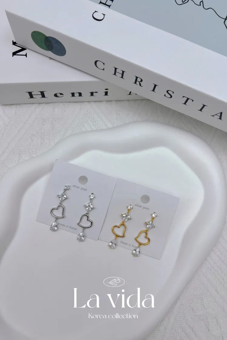 CS369簍空愛心菱形鋯石垂墜耳環 金 銀 玫瑰金 耳針$240 耳夾(螺旋夾)$260